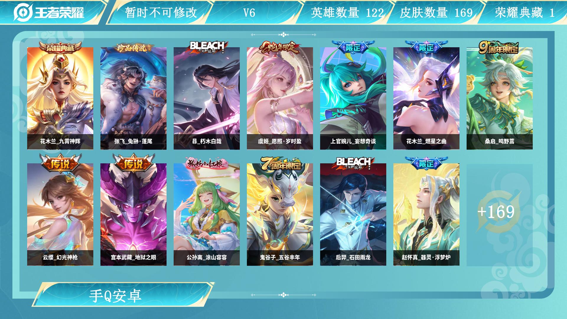 木兰典藏/张飞+暃2珍品/愿照虞姬皮肤数量169印记总数10