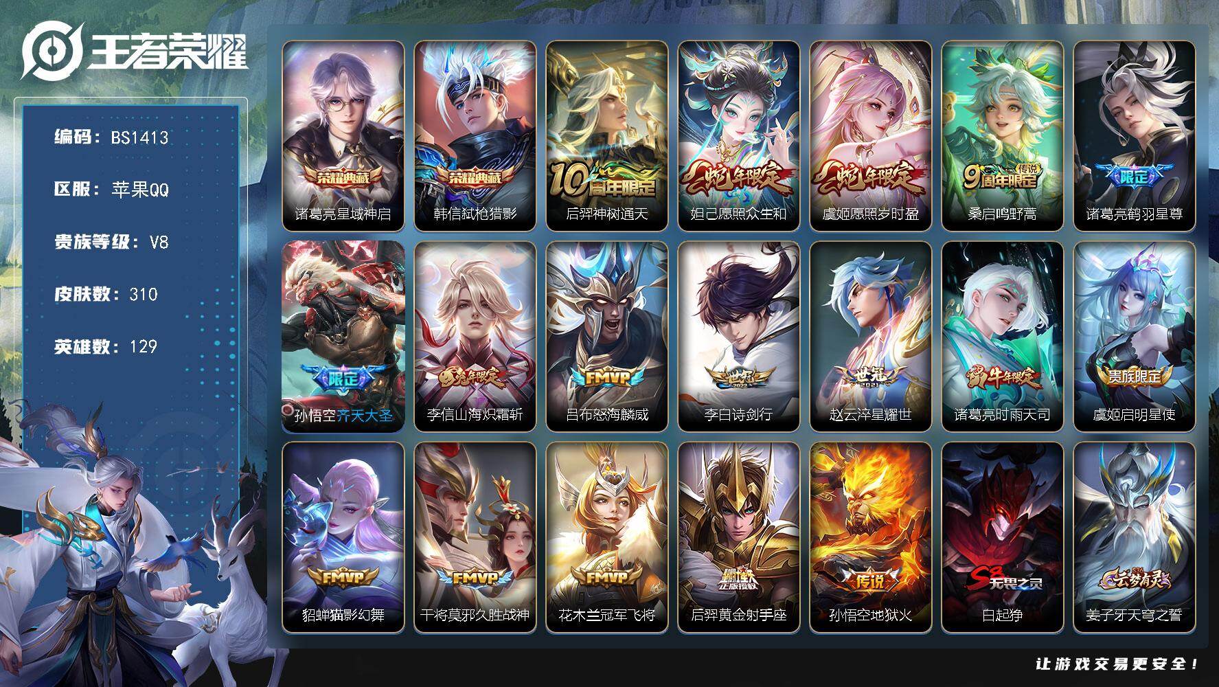 苹果Q-V8-至尊星耀I段位-129英雄-310皮肤-2典藏皮肤-17传说-8