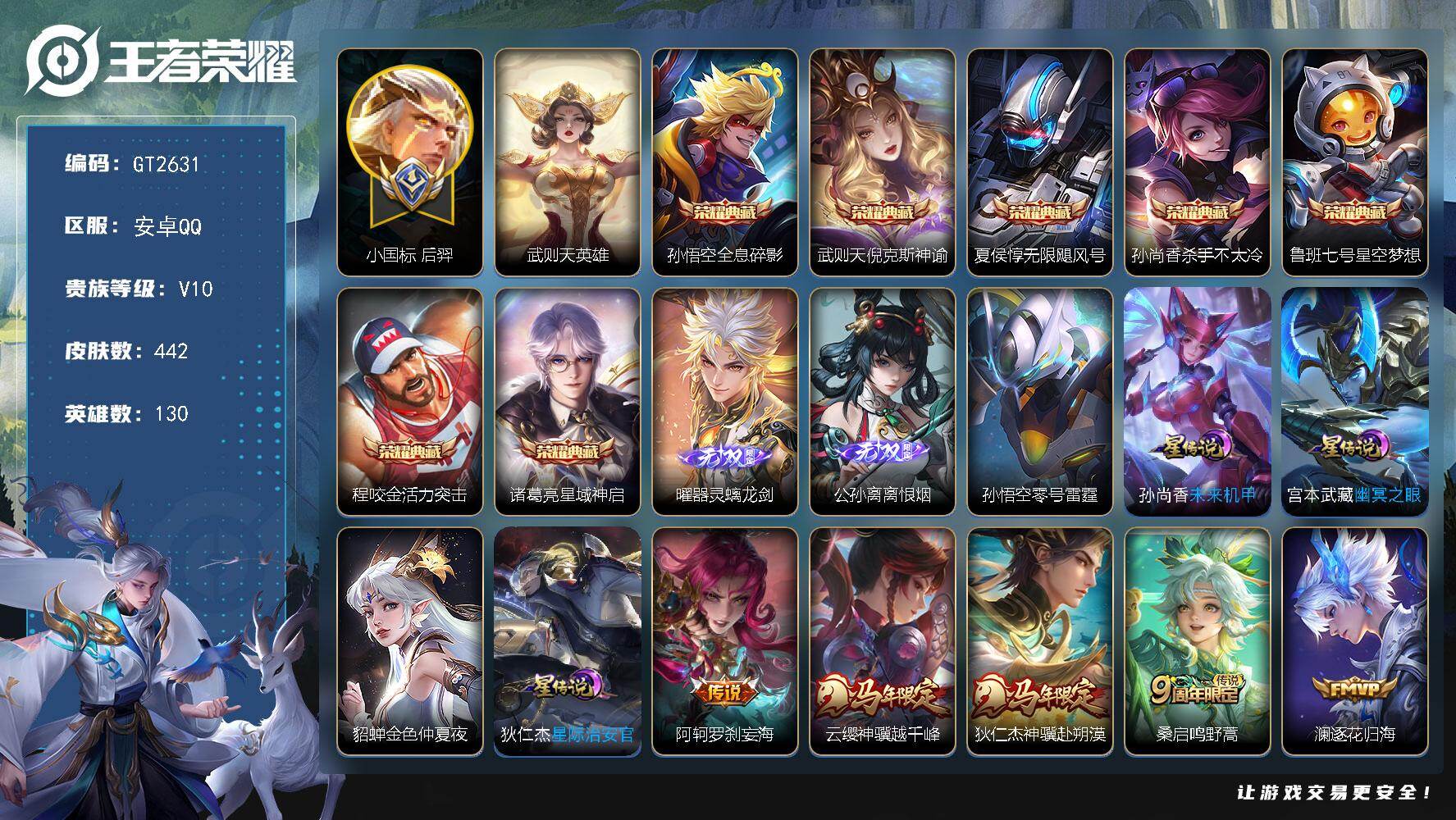 【至尊宝 琥珀纪元130皮肤1星元2传说可秒换绑】安卓QQ