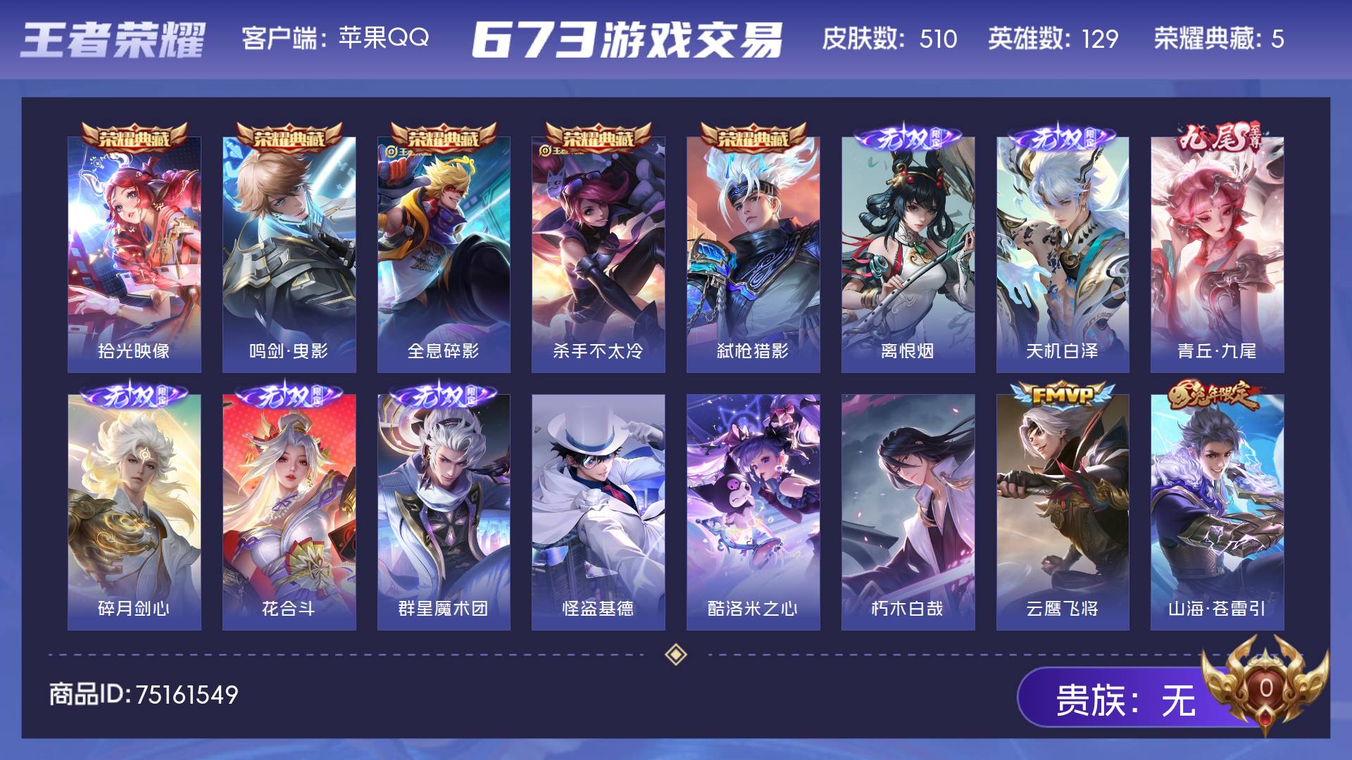 苹果QQ-可二次-皮肤510 英雄129 荣耀典藏5 无双皮肤6 珍品传说3 传说56 其他皮肤444-
