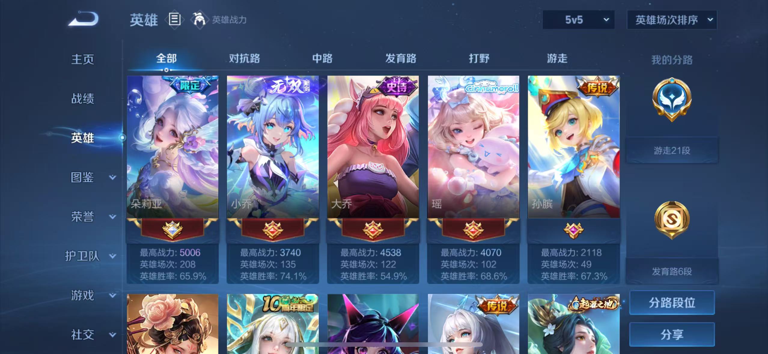 安卓Q-尊贵铂金IV-125英雄-206皮肤-1典藏-6传说-49史诗