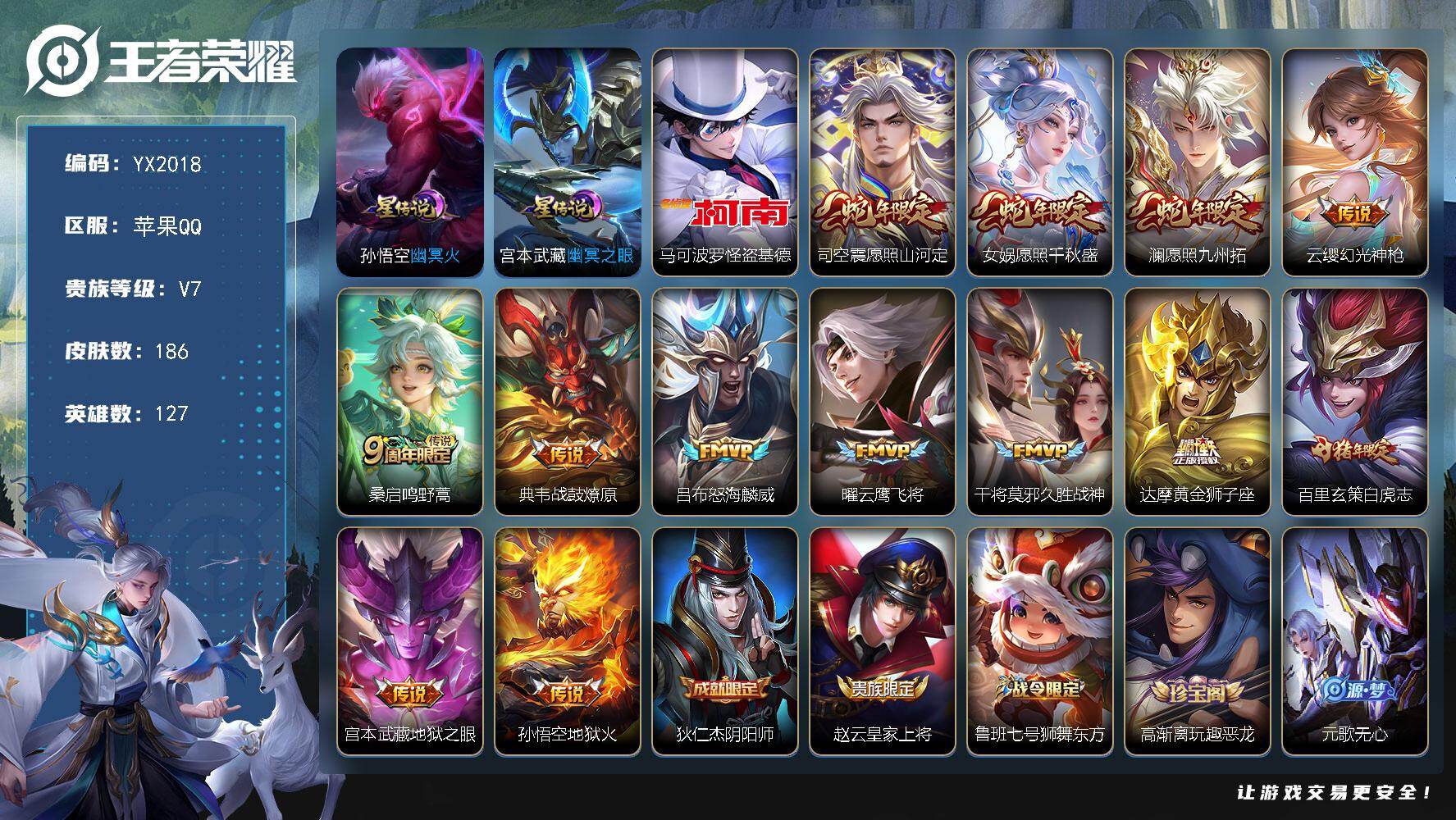【怪盗基德/白虎志/愿照千秋盛/】苹果Q-186皮肤1珍品传说13传说/愿照山