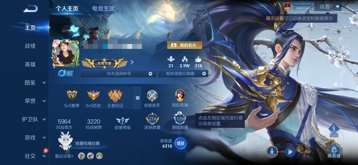 实名: 可修改 贵族等级: V7 英雄数: 127 皮肤数: 177 星传说: