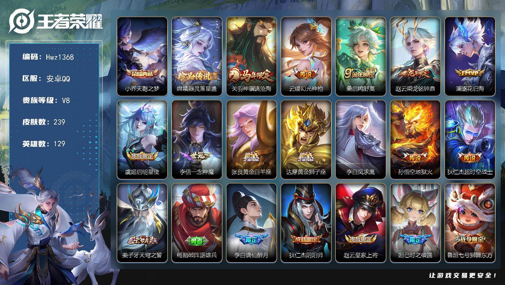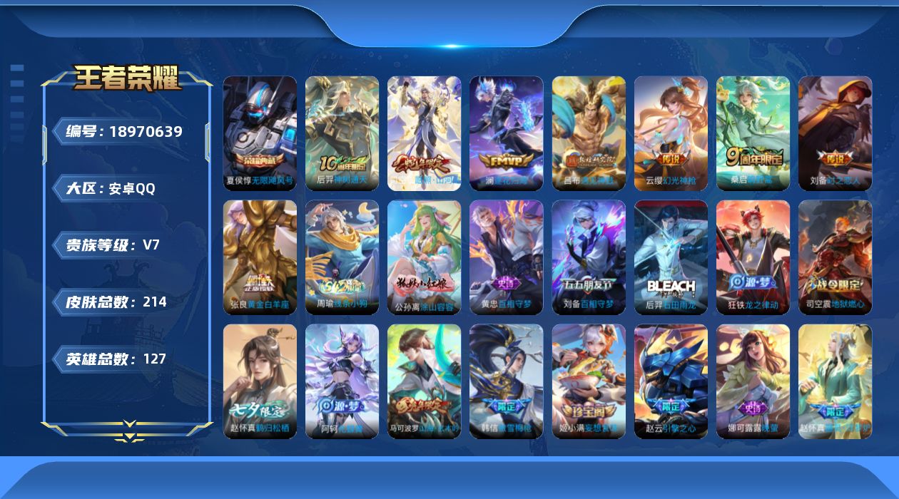 安卓Q-V7-至尊星耀V段位-127英雄-237皮肤-2典藏皮肤-14传说-5