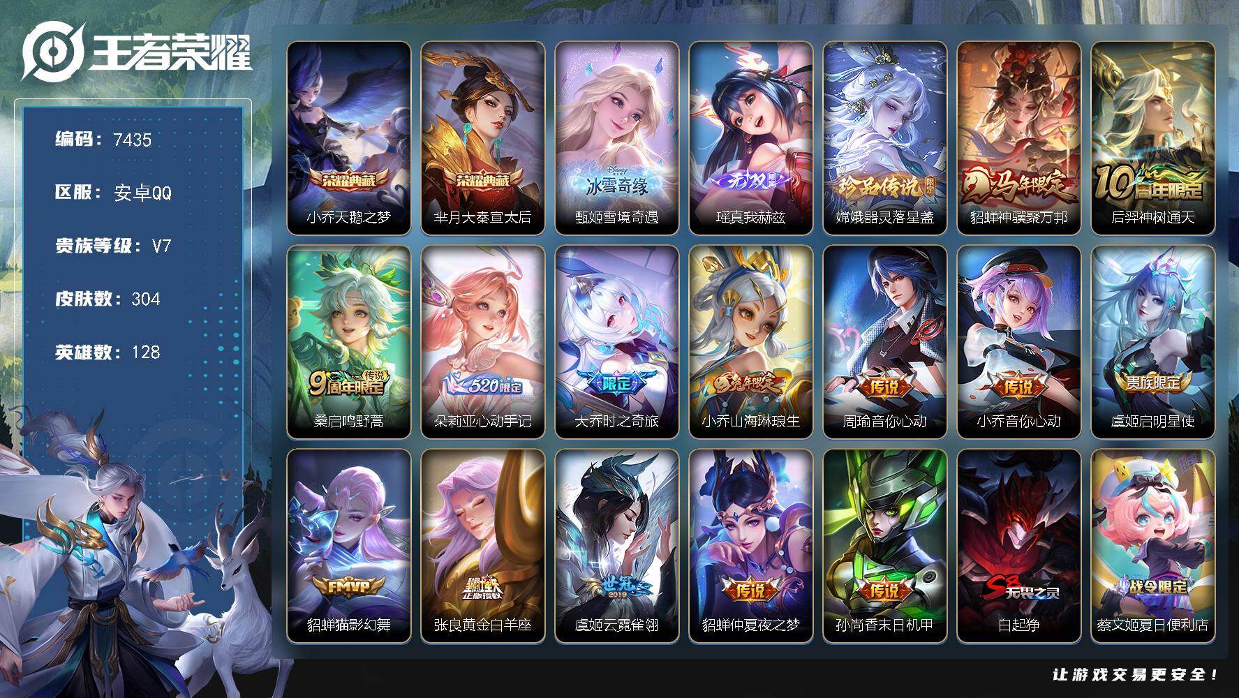 安卓Q-V4-永恒钻石III段位-128英雄-165皮肤-1典藏皮肤-3传说-3