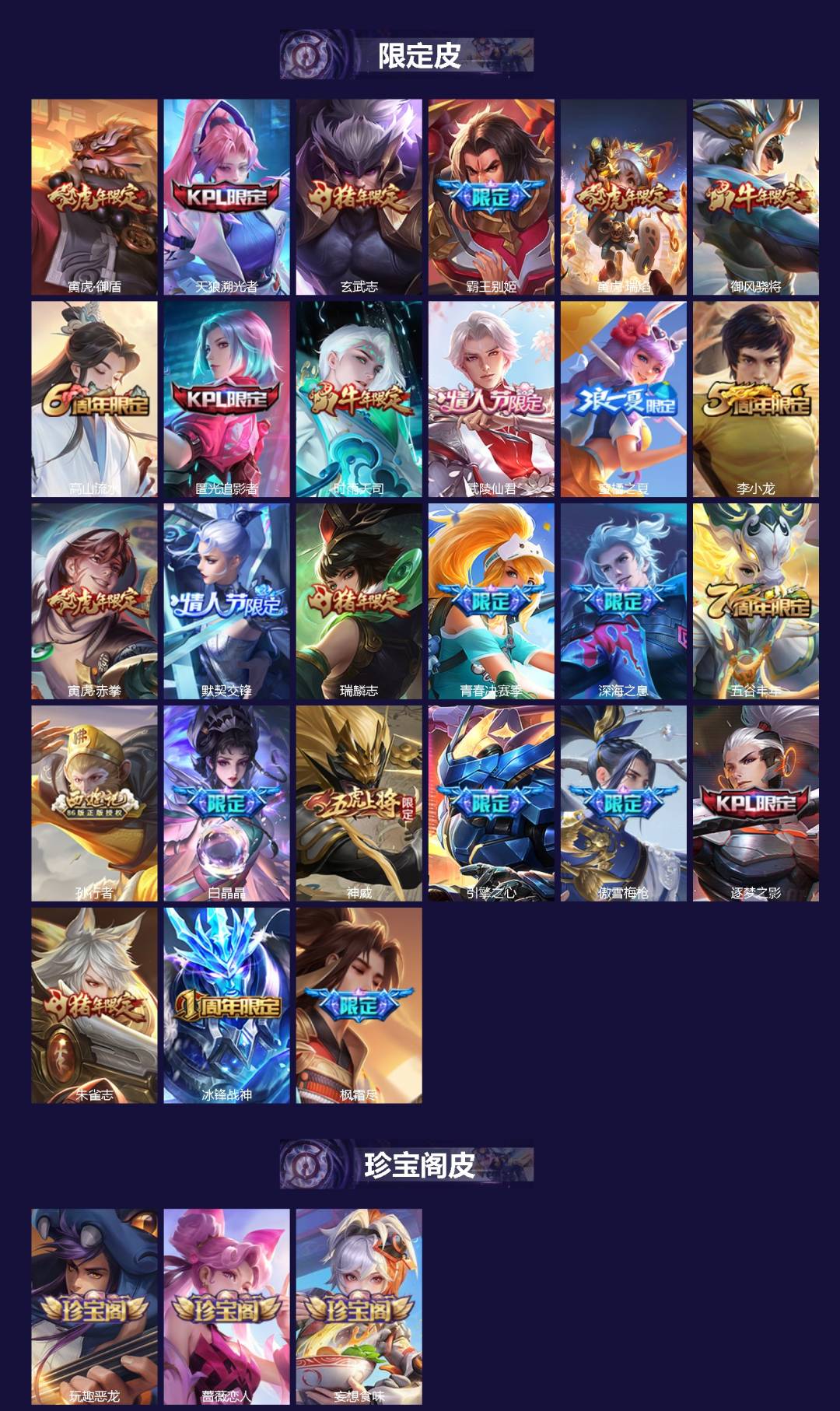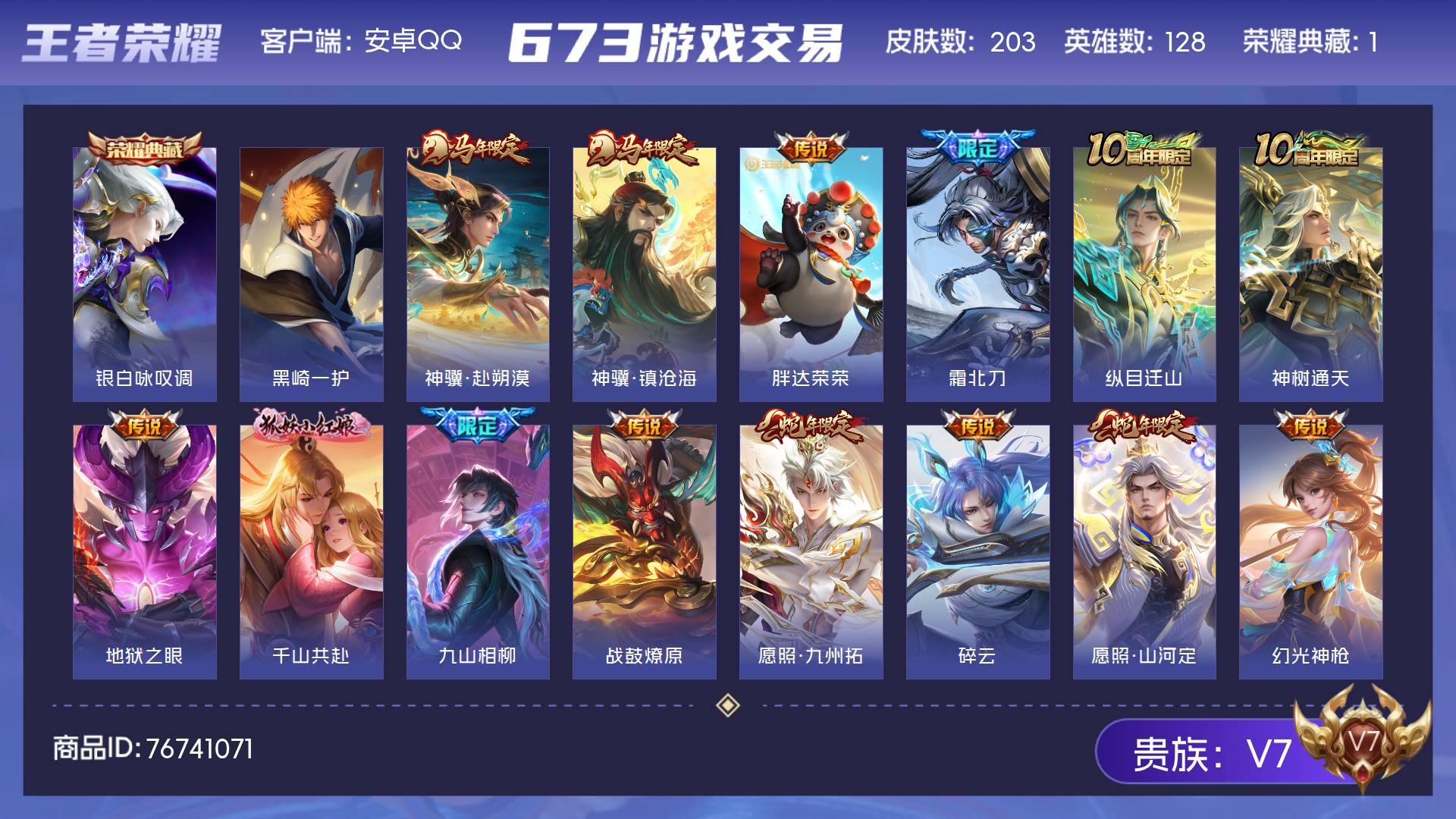 V7 皮肤203 英雄128 至尊星耀 荣耀典藏1 珍品传说1 传说16