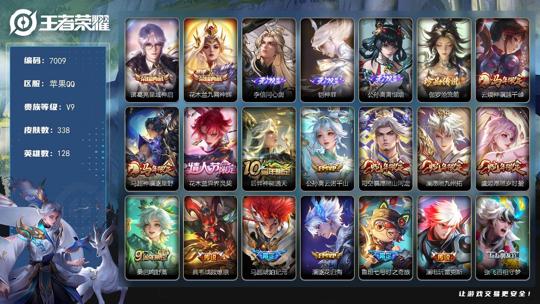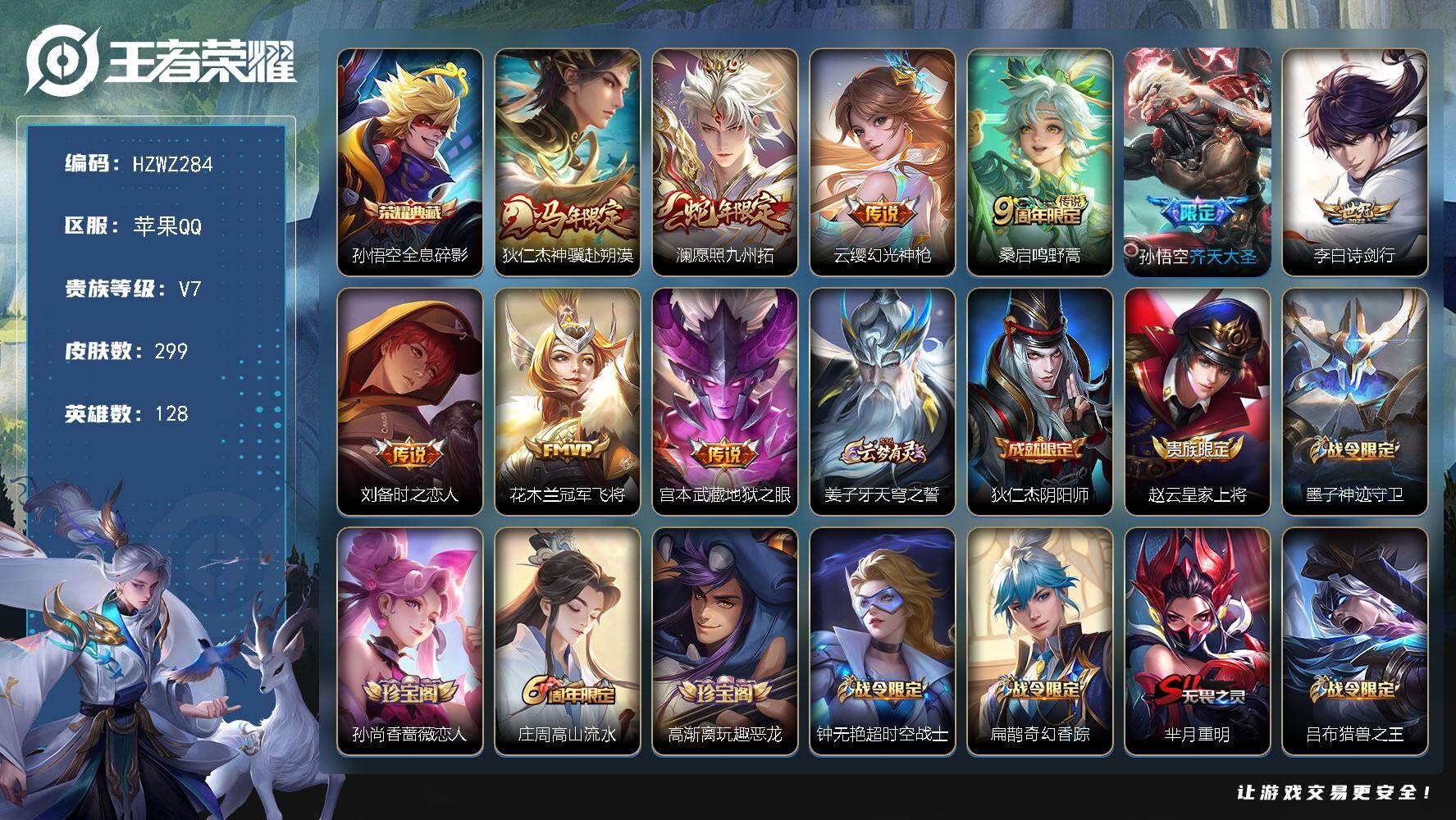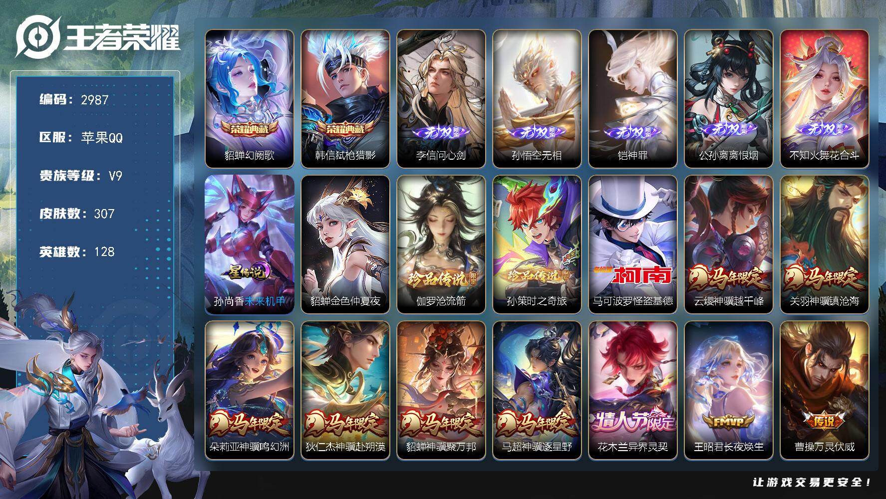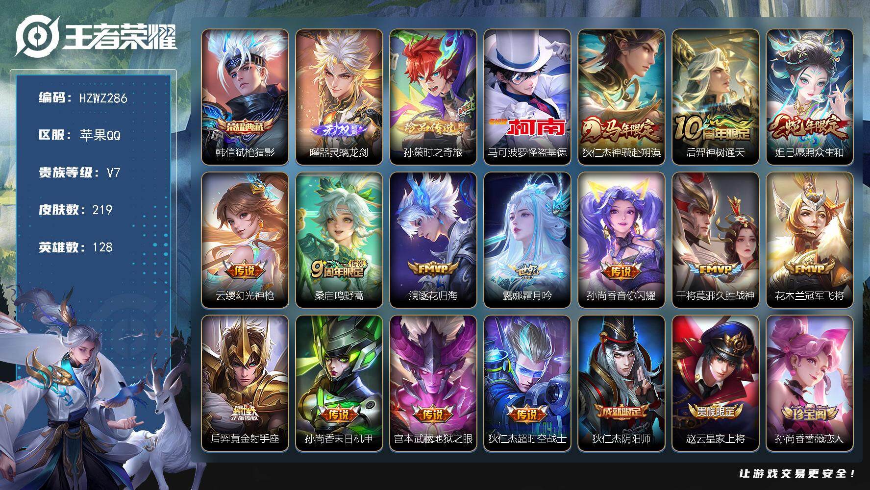 苹果Q-V7-永恒钻石II段位-128英雄-299皮肤-1典藏皮肤-9传说-83