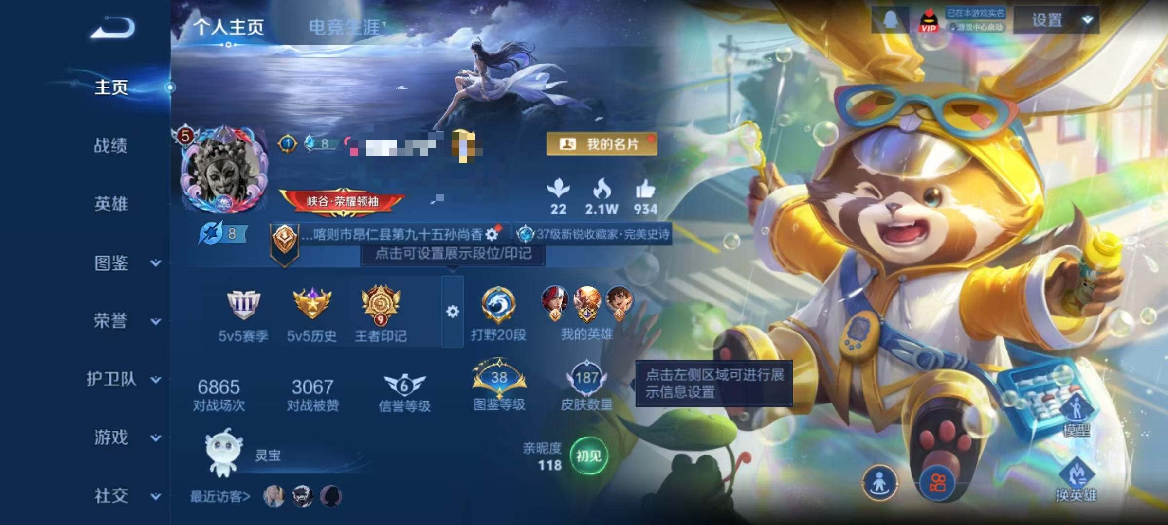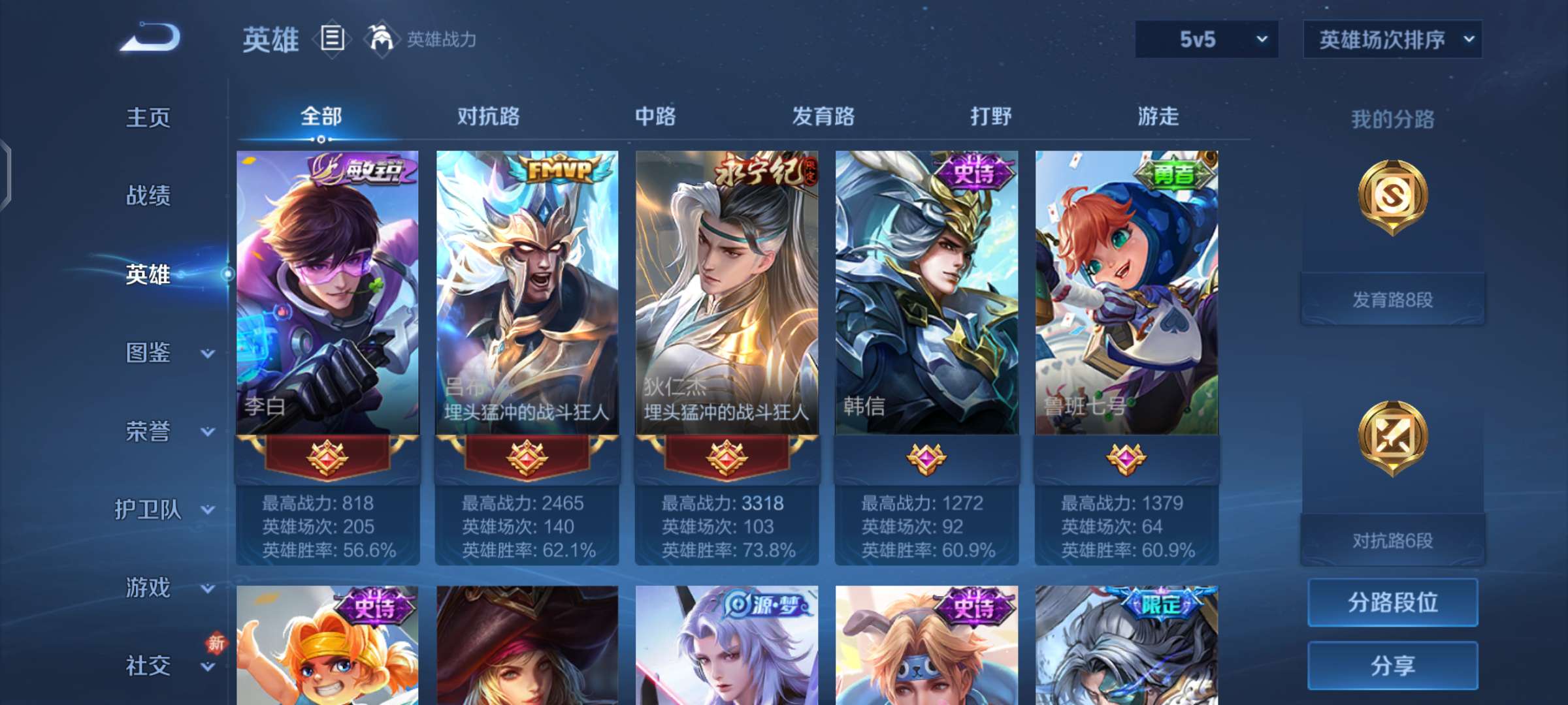 V5 2传说 1星元打野20段-187皮肤-127英雄