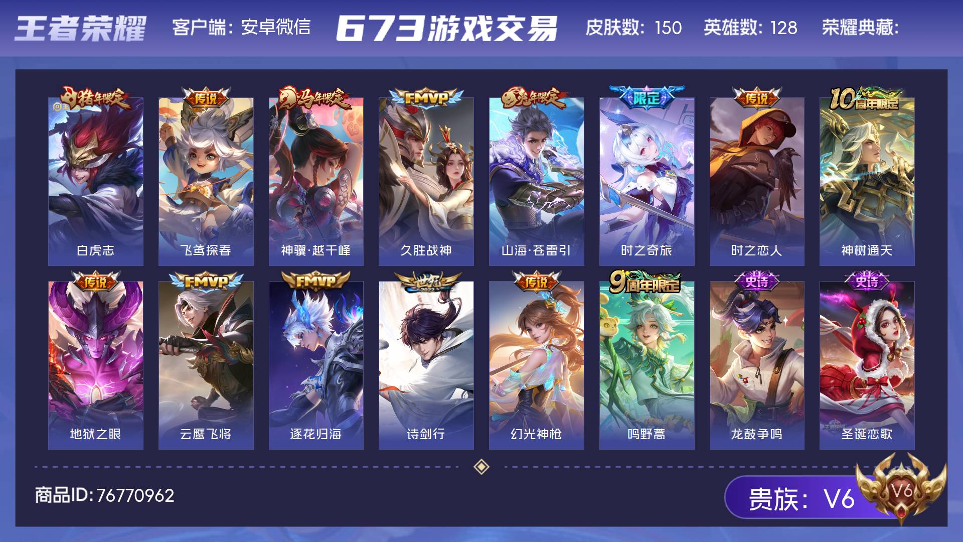 V6 皮肤150 英雄128 绝世王者 星传说2 传说14