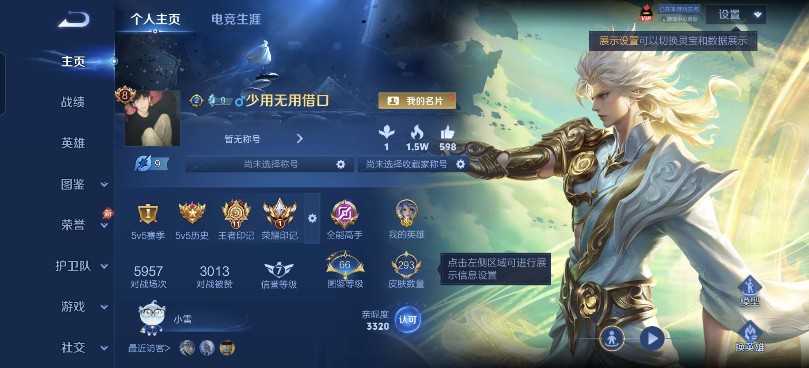 【16777384】贵族等级9/荣耀典藏数量2/传说皮肤数量28/史诗皮肤数量