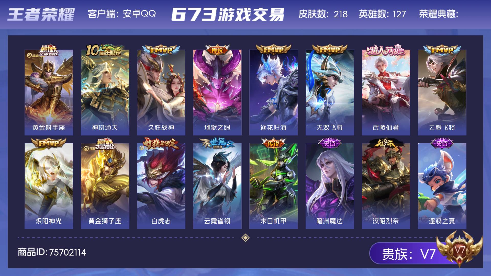 V7 皮肤218 英雄127 最强王者 传说14 其他皮肤209