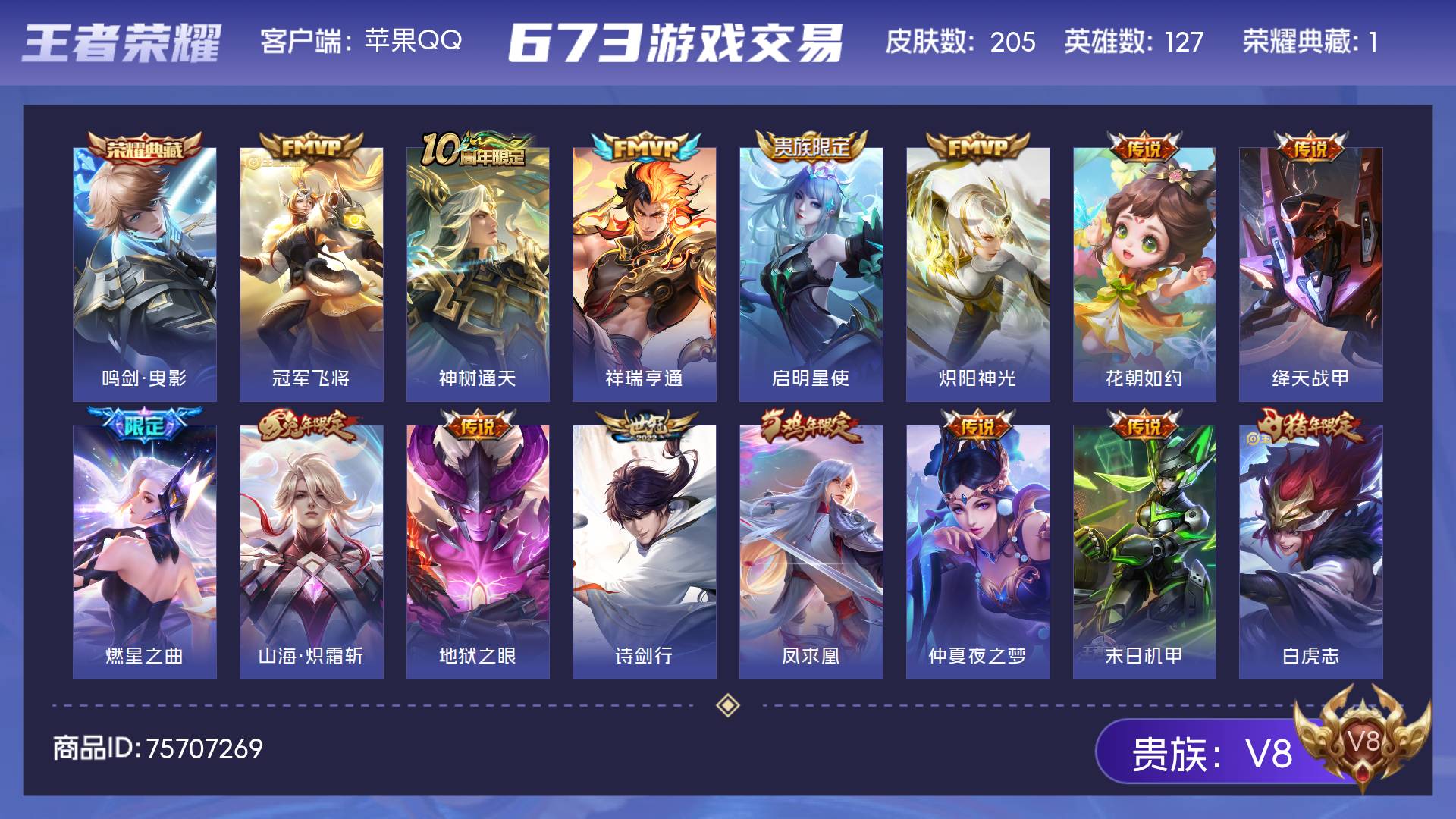 V8 皮肤205 英雄127 非凡王者 荣耀典藏1 星传说2 传说15 其他皮肤194