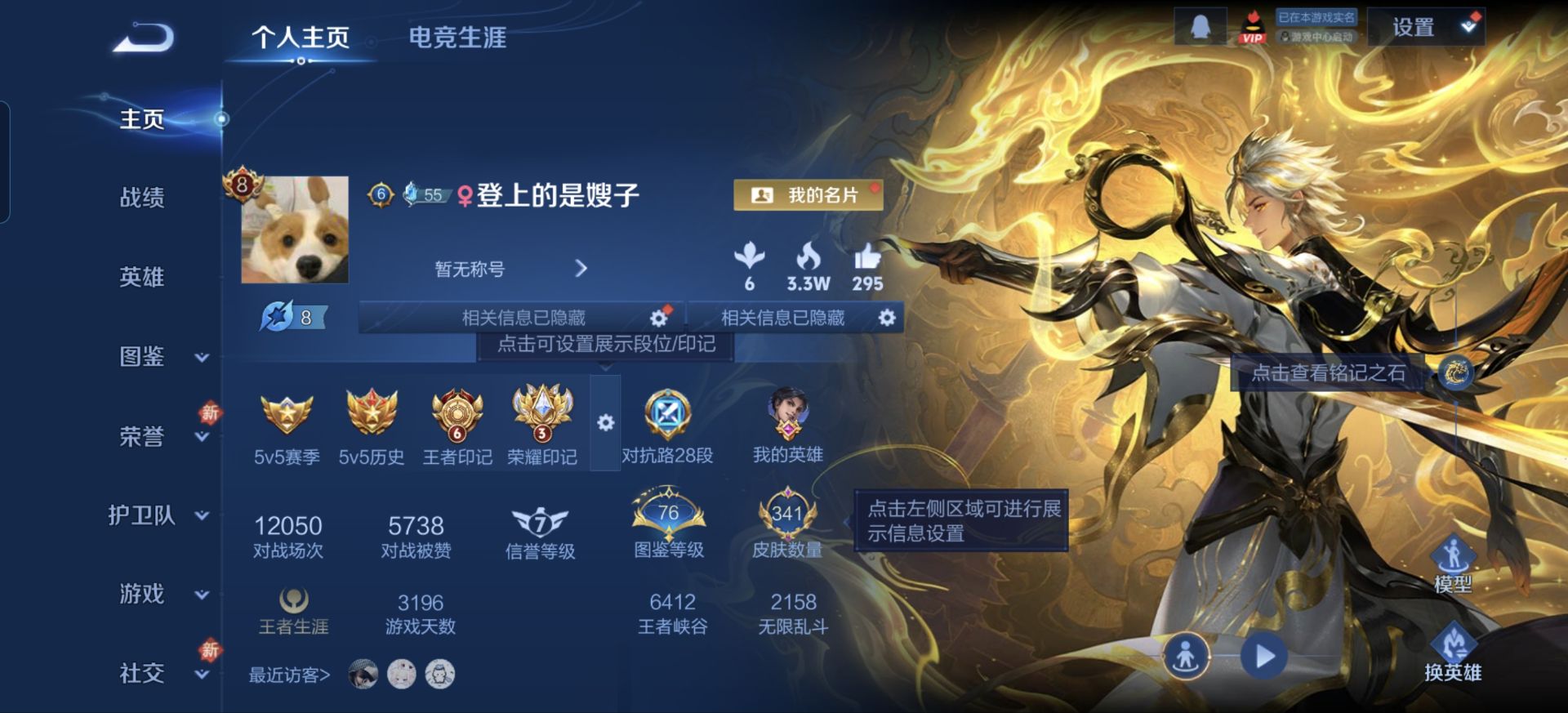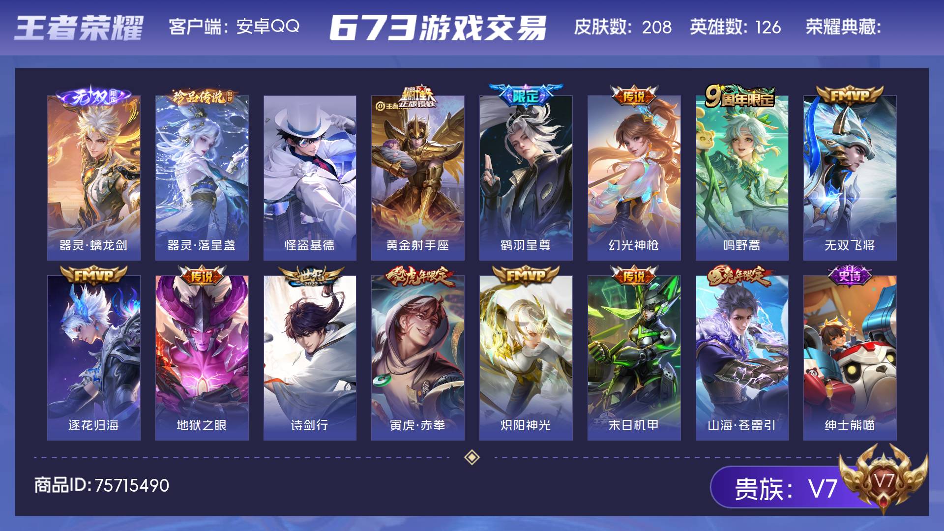 V7 皮肤208 英雄126 至尊星耀 无双皮肤1 珍品传说2 传说12 其他皮肤197