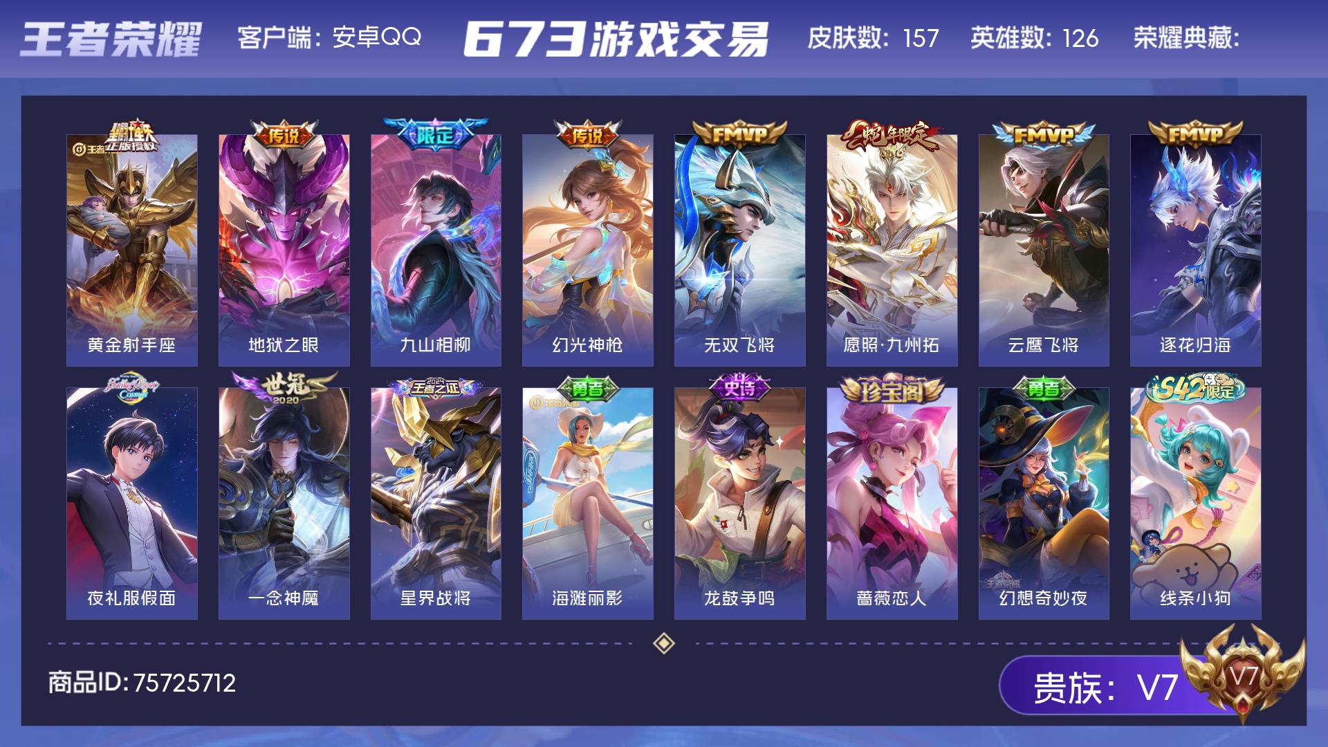 V7 皮肤157 英雄126 最强王者 传说10 其他皮肤153