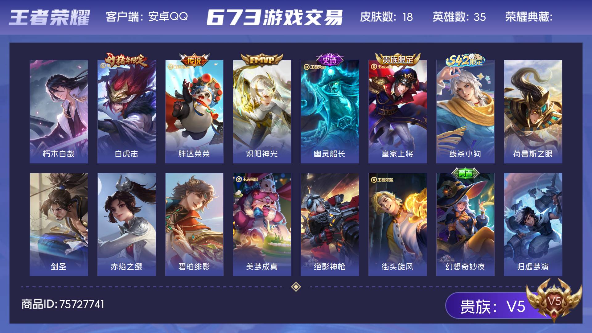 V5 皮肤18 英雄35 非凡王者 珍品传说1 传说3 其他皮肤15
