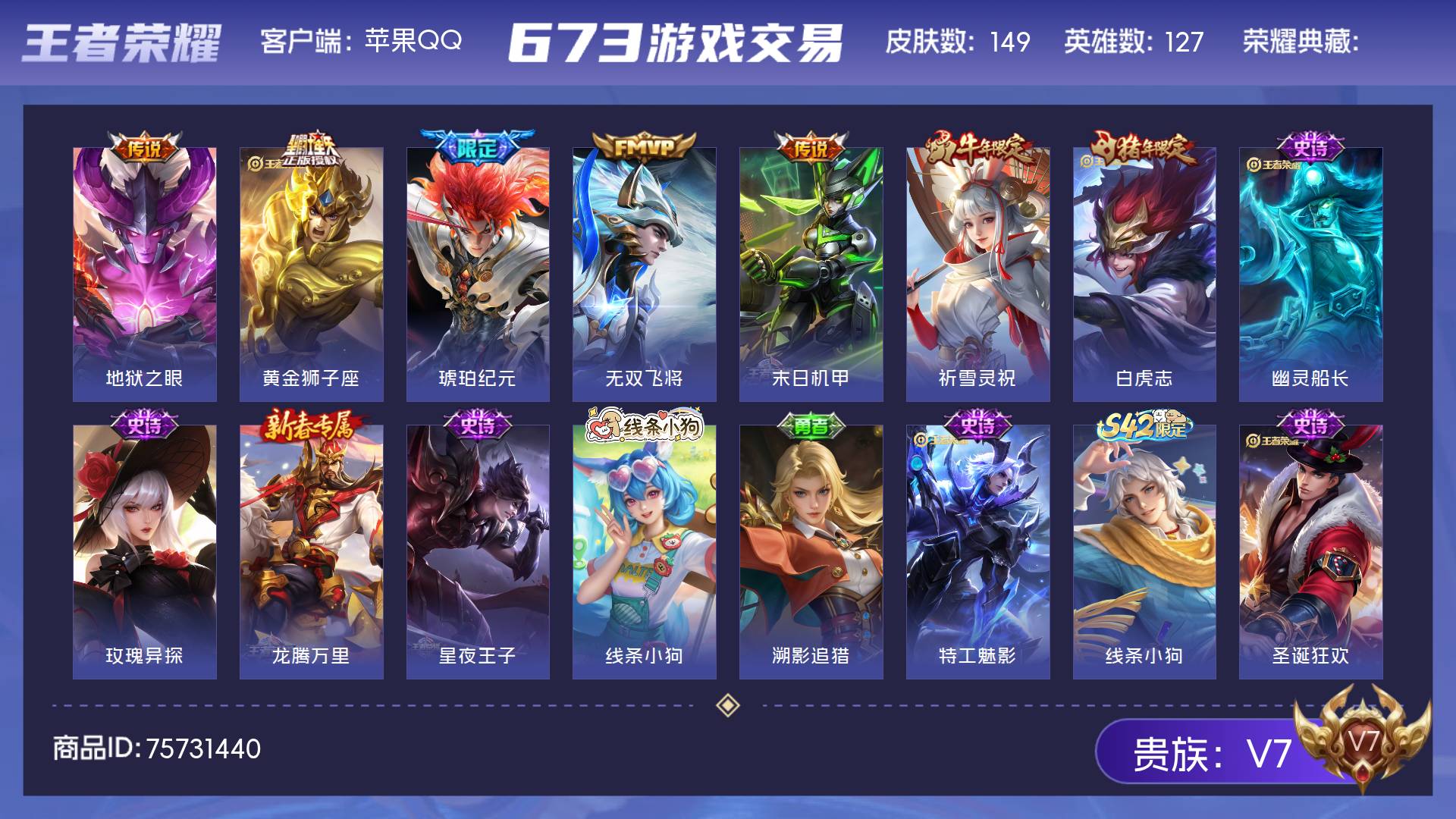 V7 皮肤149 英雄127 至尊星耀 传说7 其他皮肤147