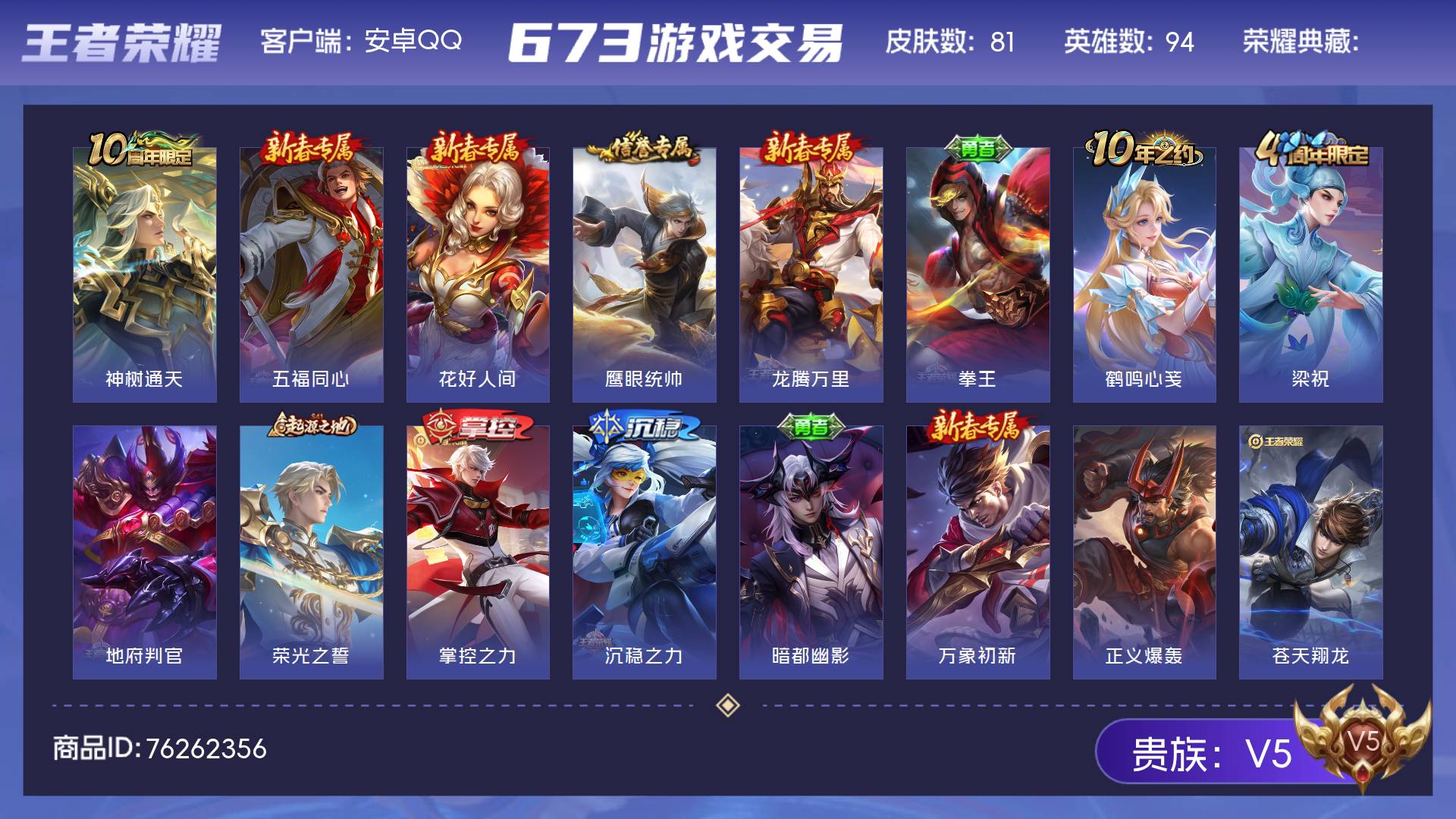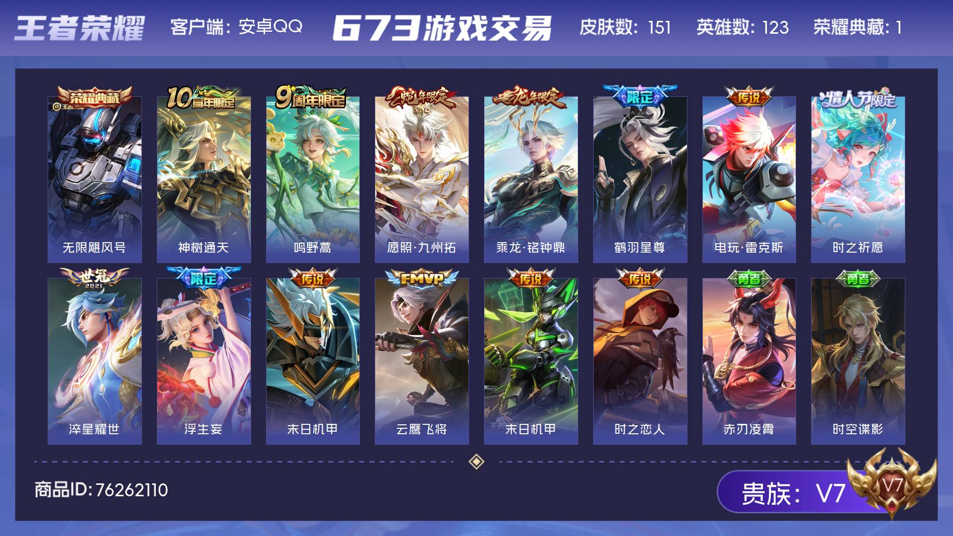 V7 皮肤151 英雄123 最强王者 荣耀典藏1 传说13