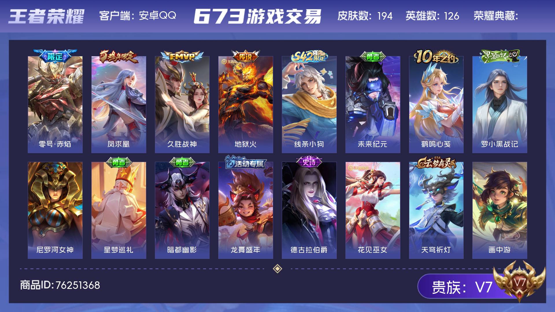 V7 皮肤194 英雄126 荣耀黄金 传说4