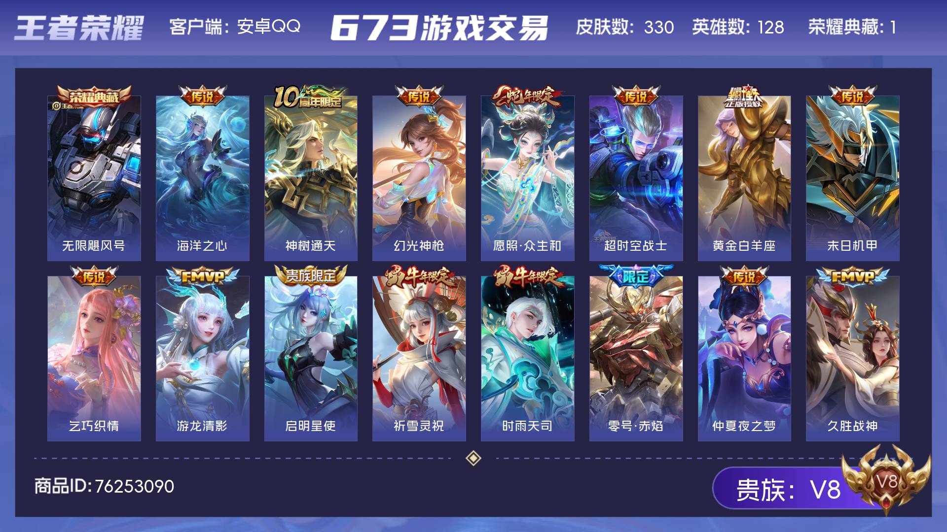V8 皮肤330 英雄128 至圣王者 荣耀典藏1 星传说2 传说23