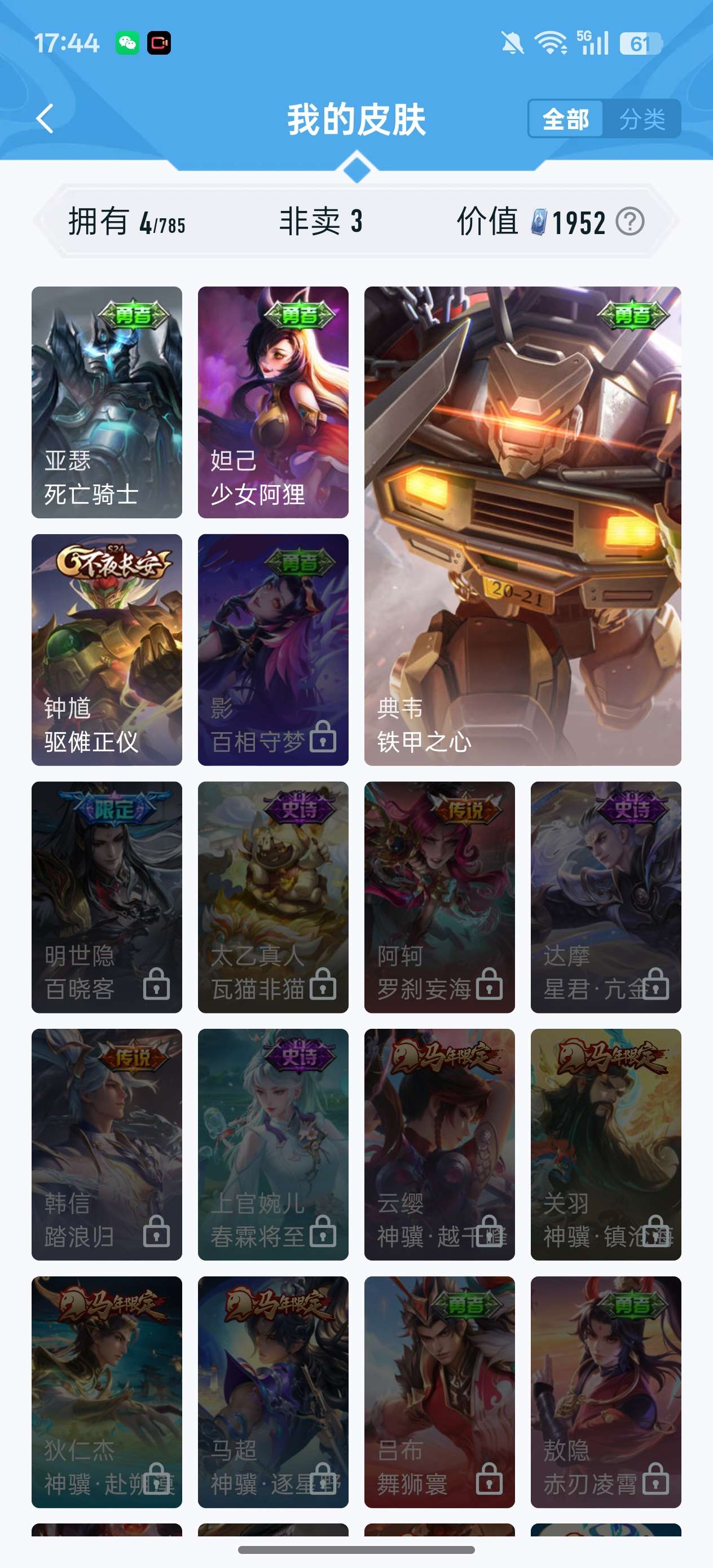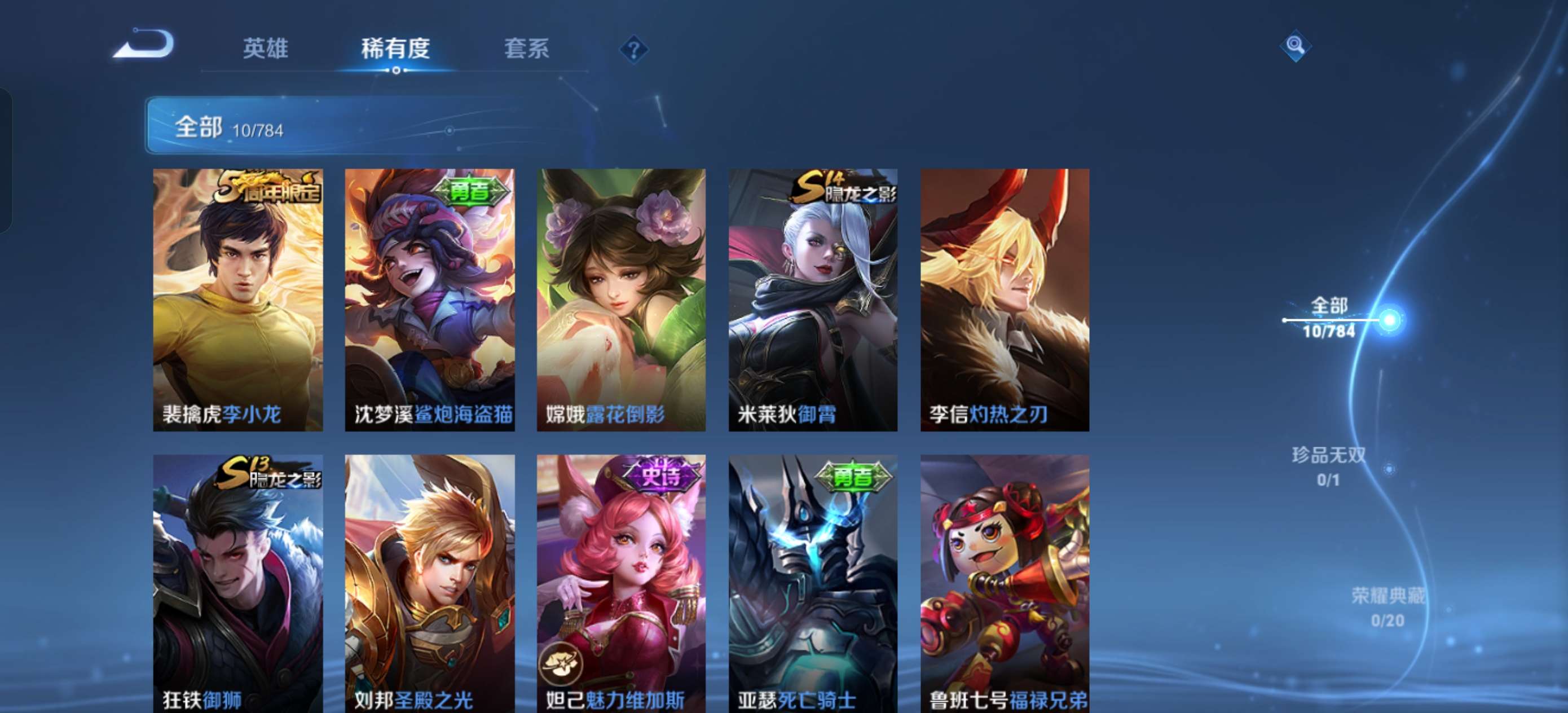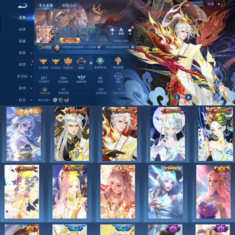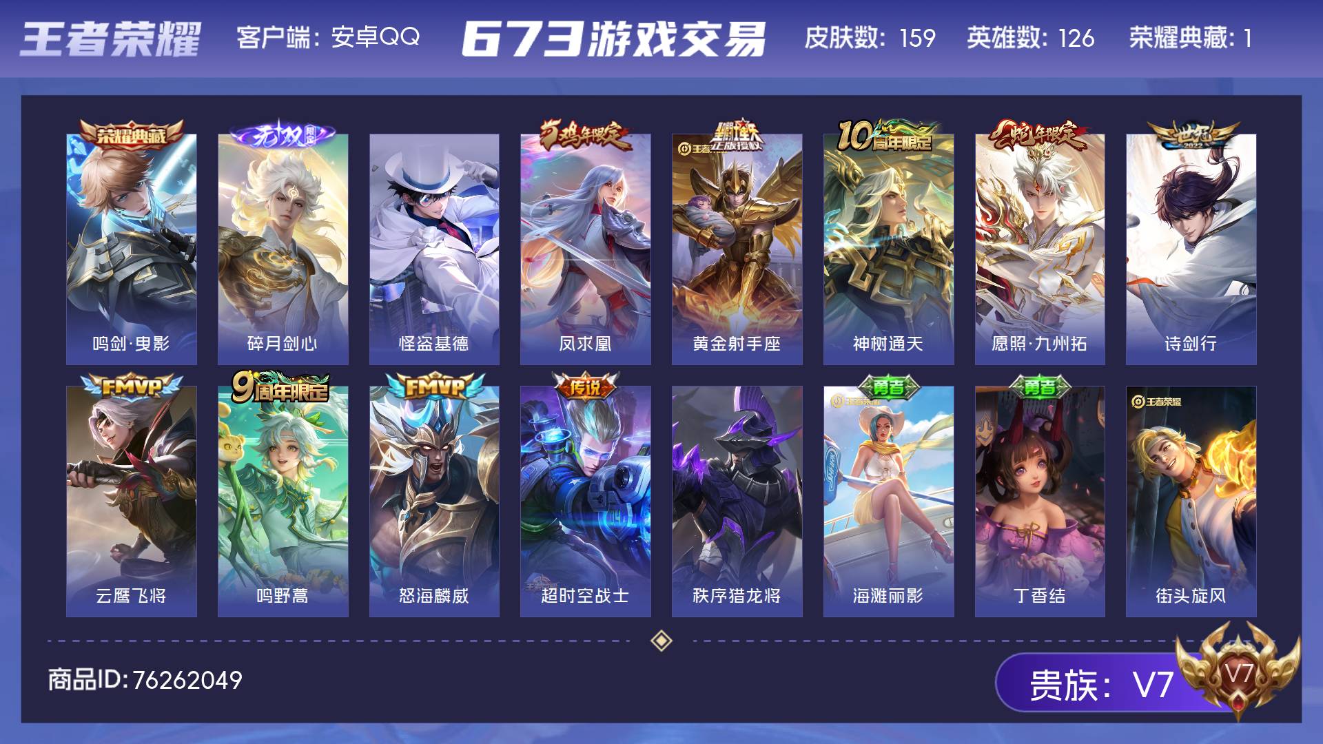 V7 皮肤159 英雄126 荣耀王者 荣耀典藏1 无双皮肤1 珍品传说1 星传说1 传说9