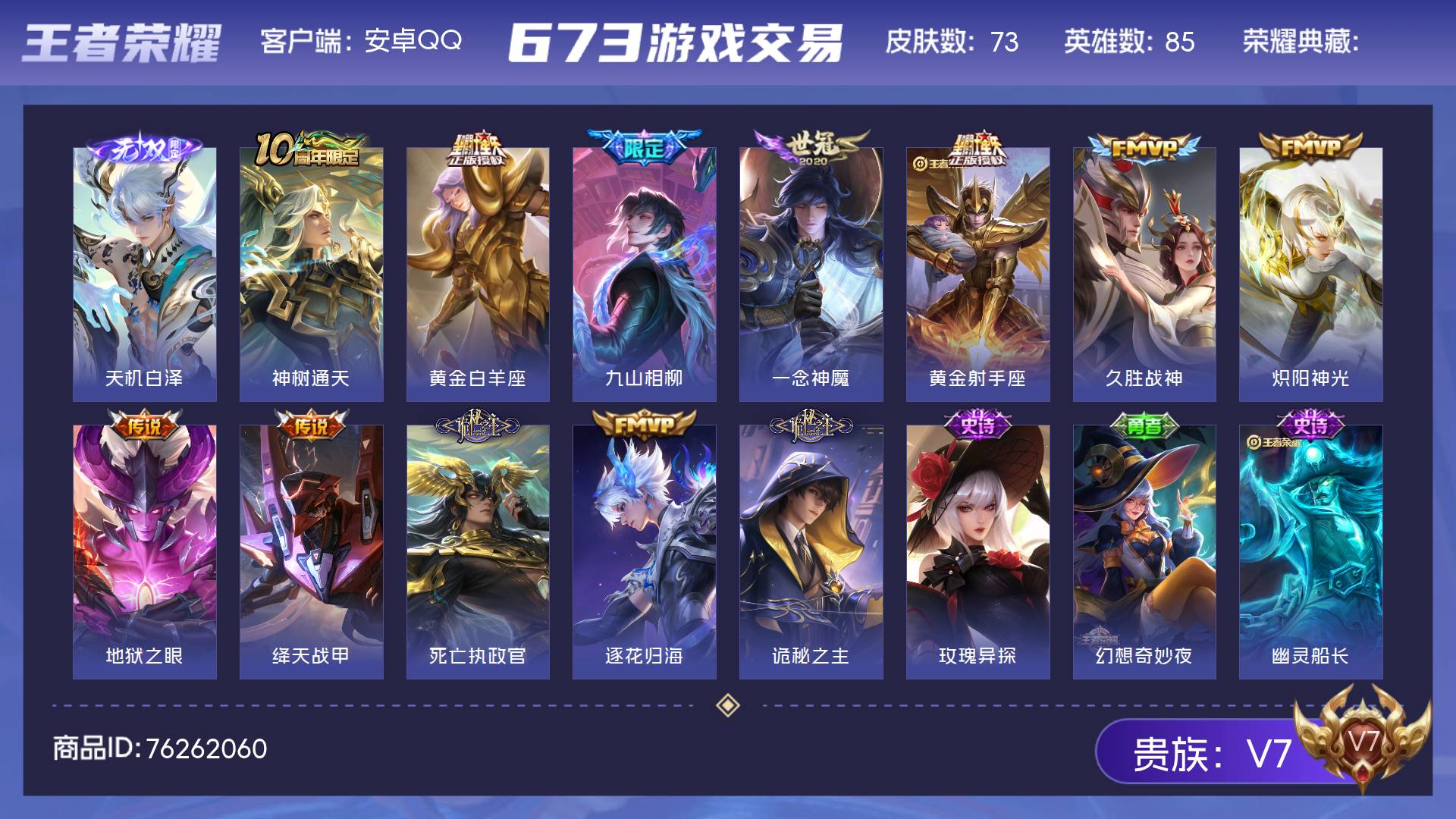 V7 皮肤73 英雄85 无双王者 无双皮肤1 星传说1 传说12