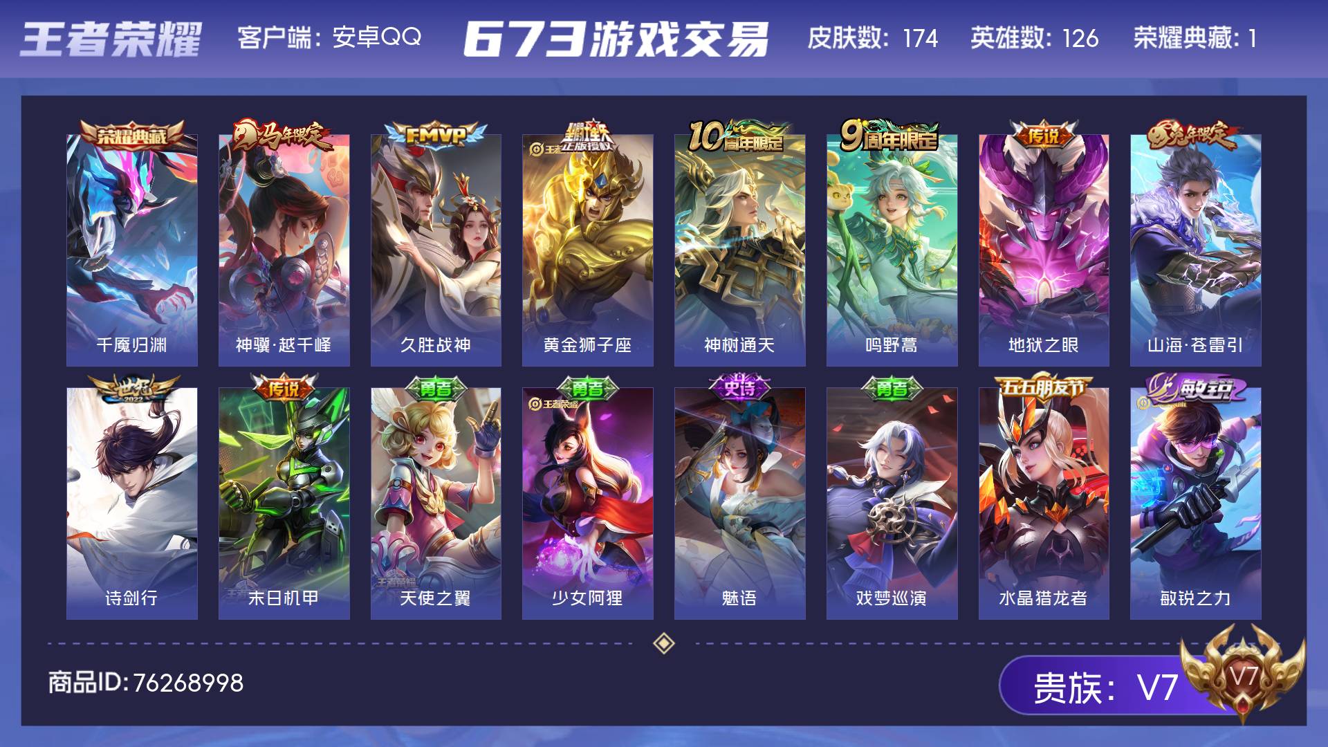 V7 皮肤174 英雄126 传奇王者 荣耀典藏1 传说9