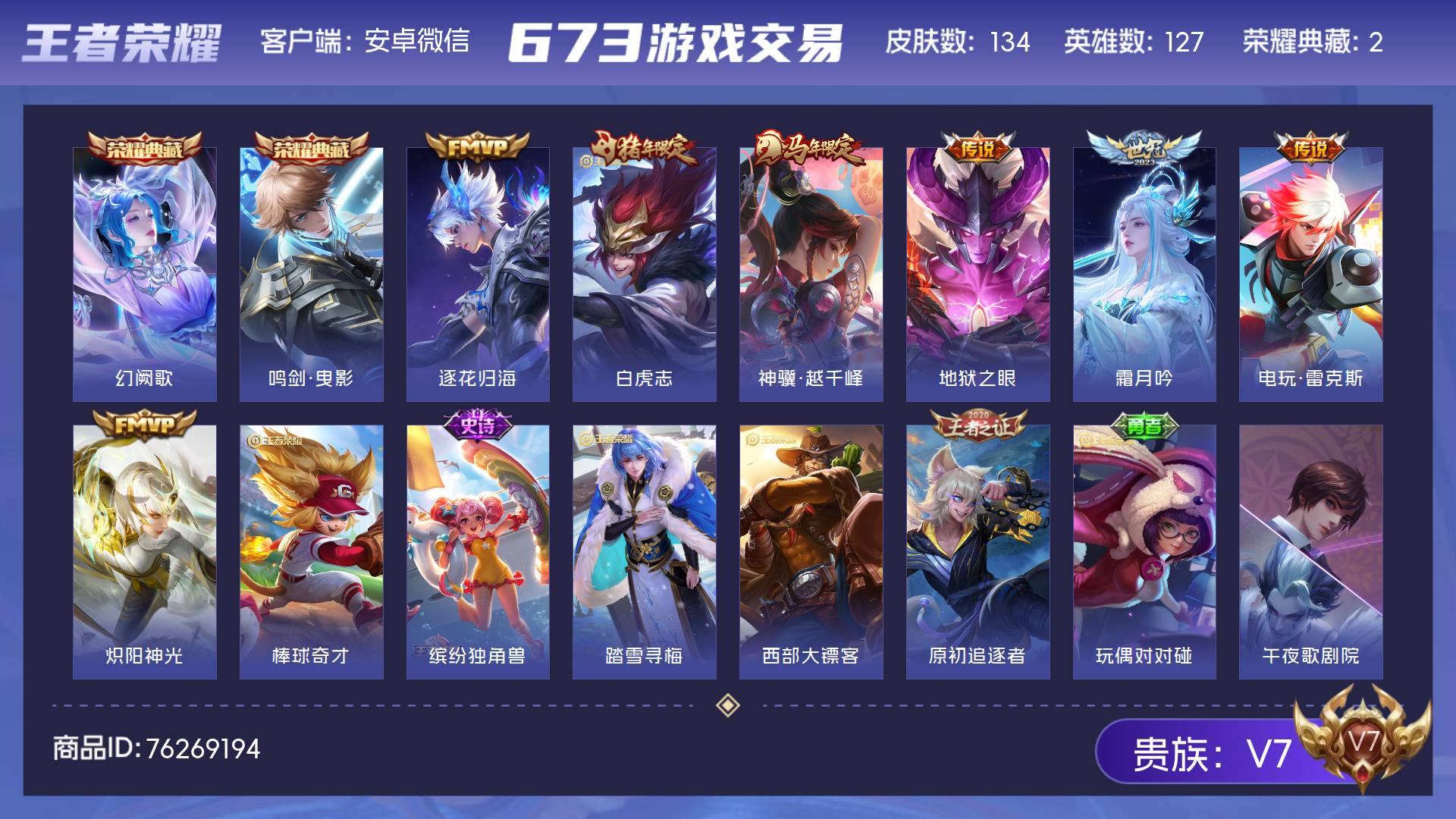 V7 皮肤134 英雄127 无双王者 荣耀典藏2 星传说1 传说7