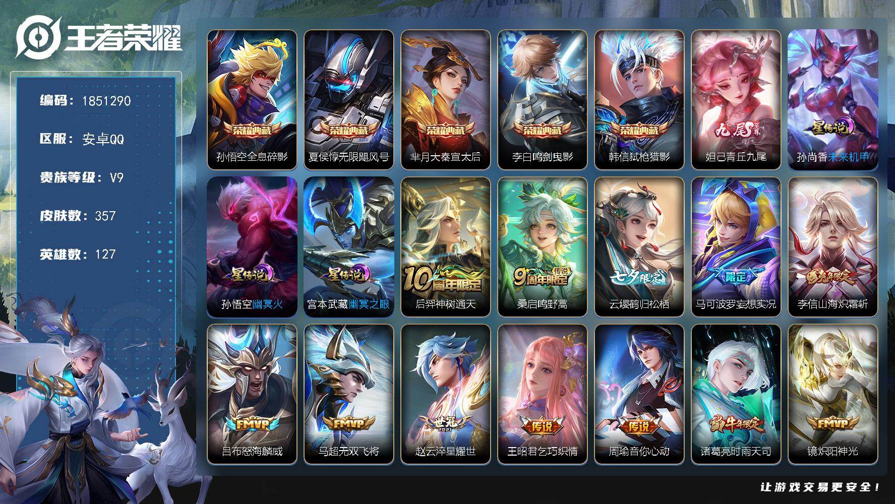安卓qv8号二荣耀典藏一个金标一个银标大量热门皮肤手慢无
