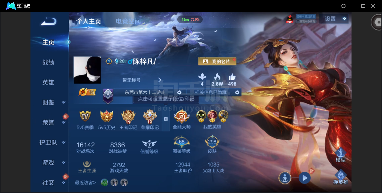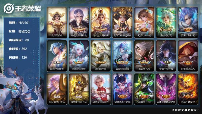 王者荣耀【安卓QQ】贵族8/皮肤392/典藏2/传说18/史诗132/英雄126/刘邦全皮/钟馗全皮/太乙真人全皮/猪八