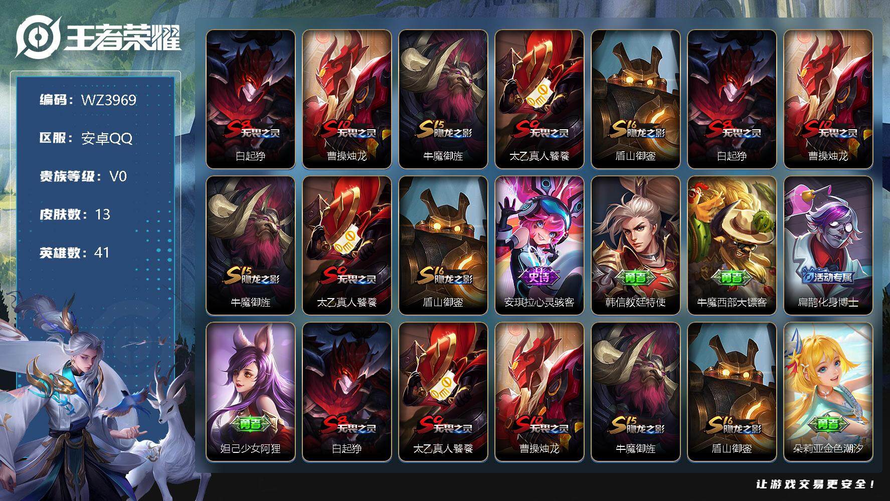 王者荣耀【安卓QQ】qq45级V0-秩序白银III段位-41英雄-13皮肤-0典藏-0珍品无双-0