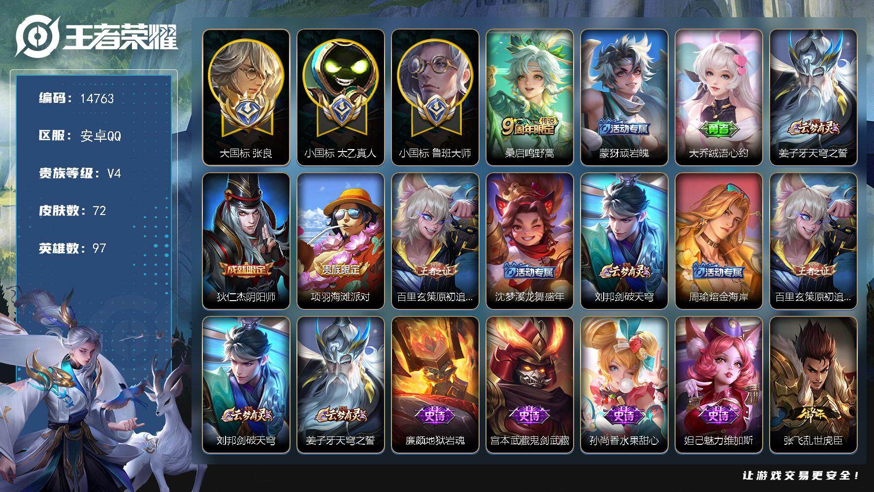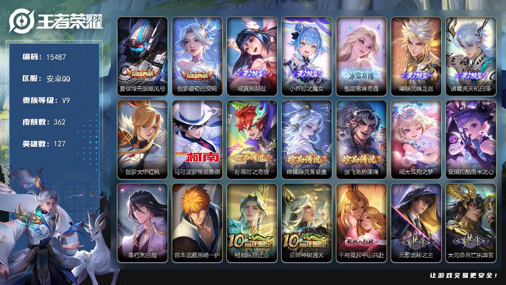 王者荣耀【安卓QQ】可换绑【V9精品号 双典藏 生肖限定13个 5无双 8珍品 多传说限定号】 幸
