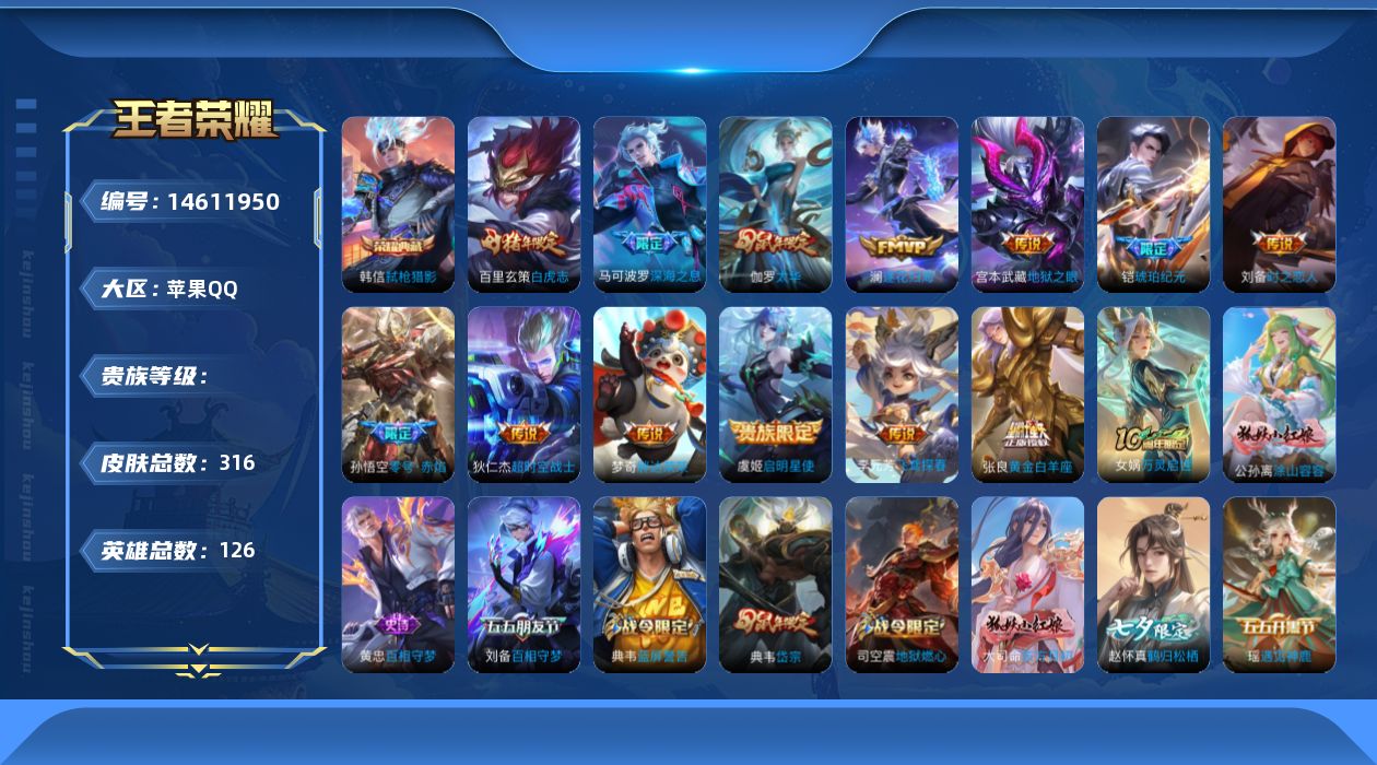 苹果微信-7典藏-75传说-2无双-510皮肤-127英雄-至尊星耀-v10 6水2无双5星元3天幕510皮
