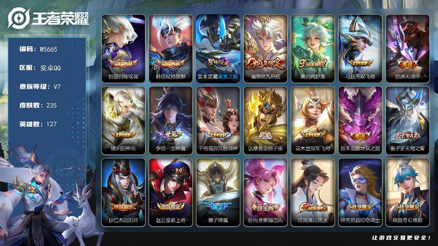 可二次-贵7-127英雄-235皮肤-2典藏-1星元-10传说-70限定-5个性按键.贵族积分2.6万