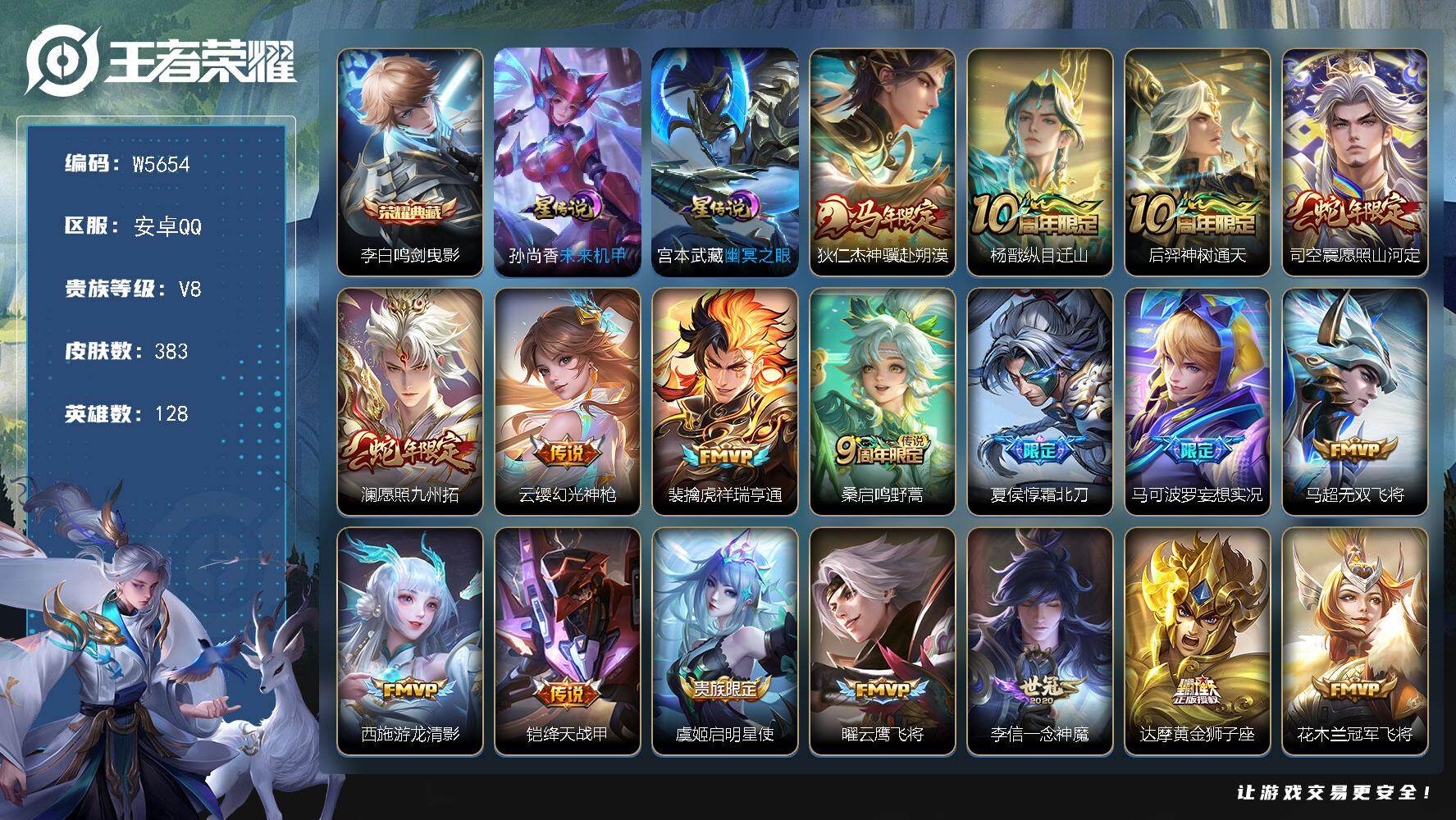 无二次-贵8-129英雄-273皮肤-3典藏-1星元-14传说-97限定-6按键-贵族积分5.6w