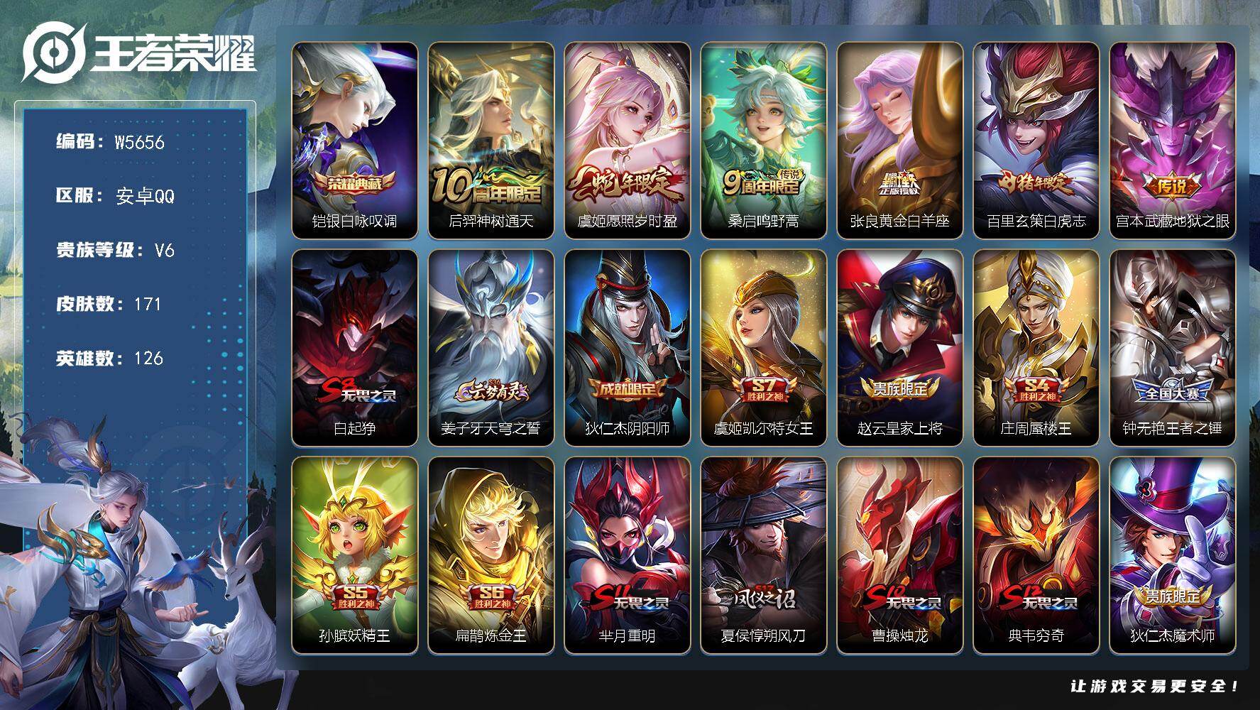 可二次-贵6-126英雄-171皮肤-1典藏-6传说-57限定-3个性按键.贵族积分1万