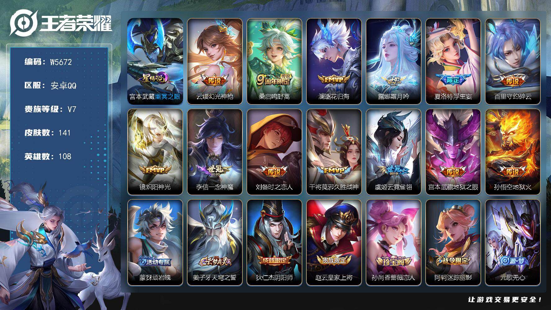 有二次-贵7-108英雄-141皮肤-13传说-38限定-5按键-贵族积分2.7w