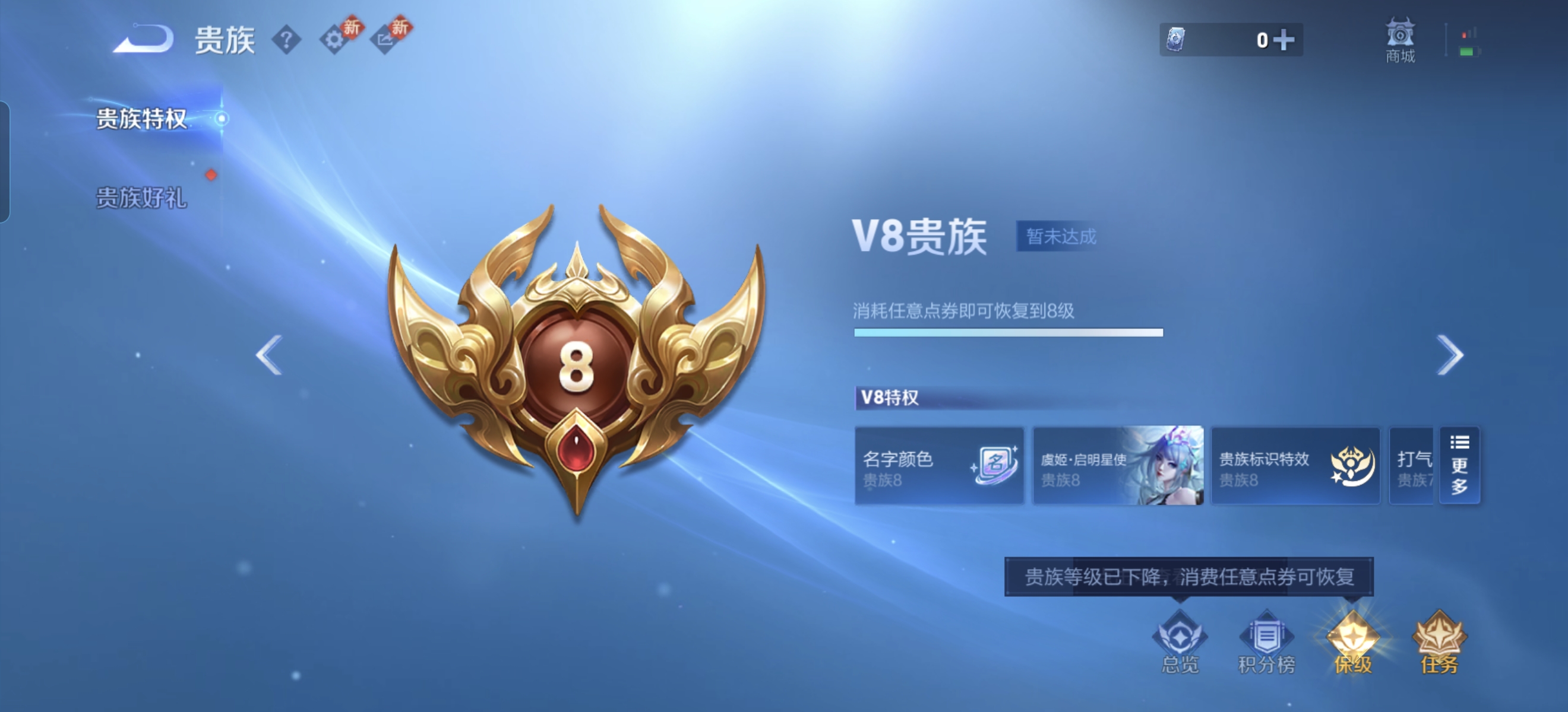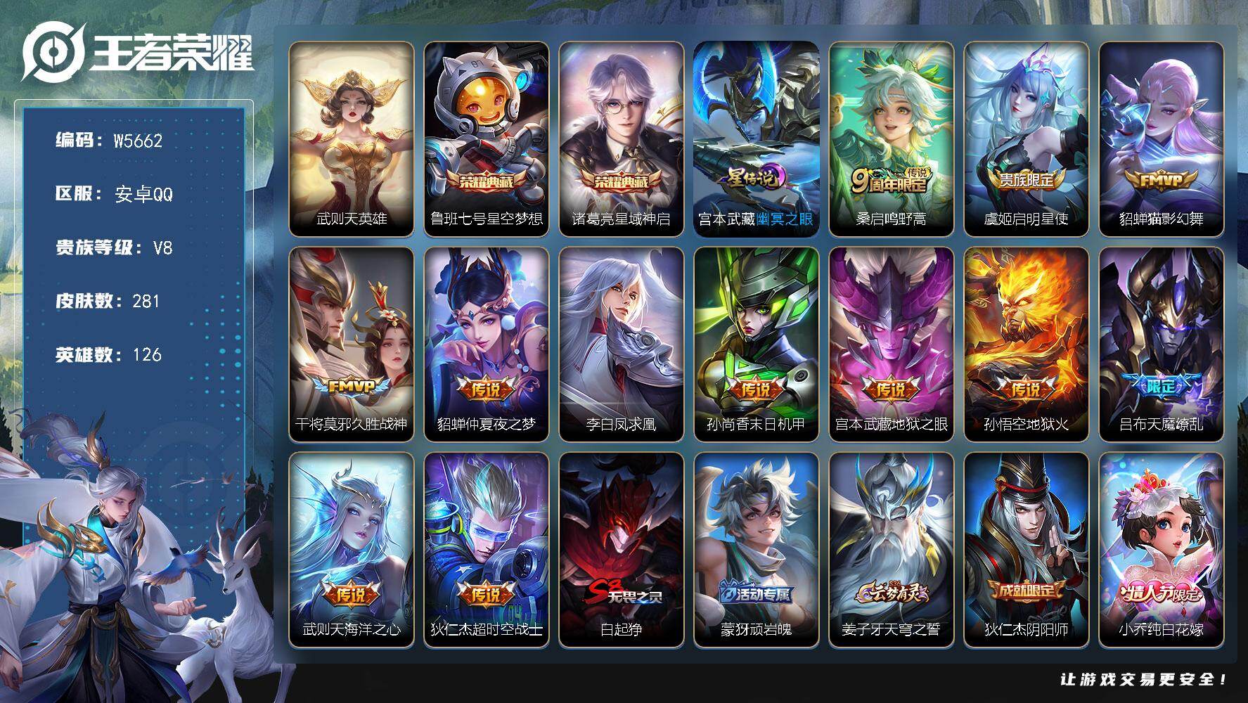 不可二次-贵8-126英雄-281皮肤-3典藏-1星元-12传说-贵族积分9.5万