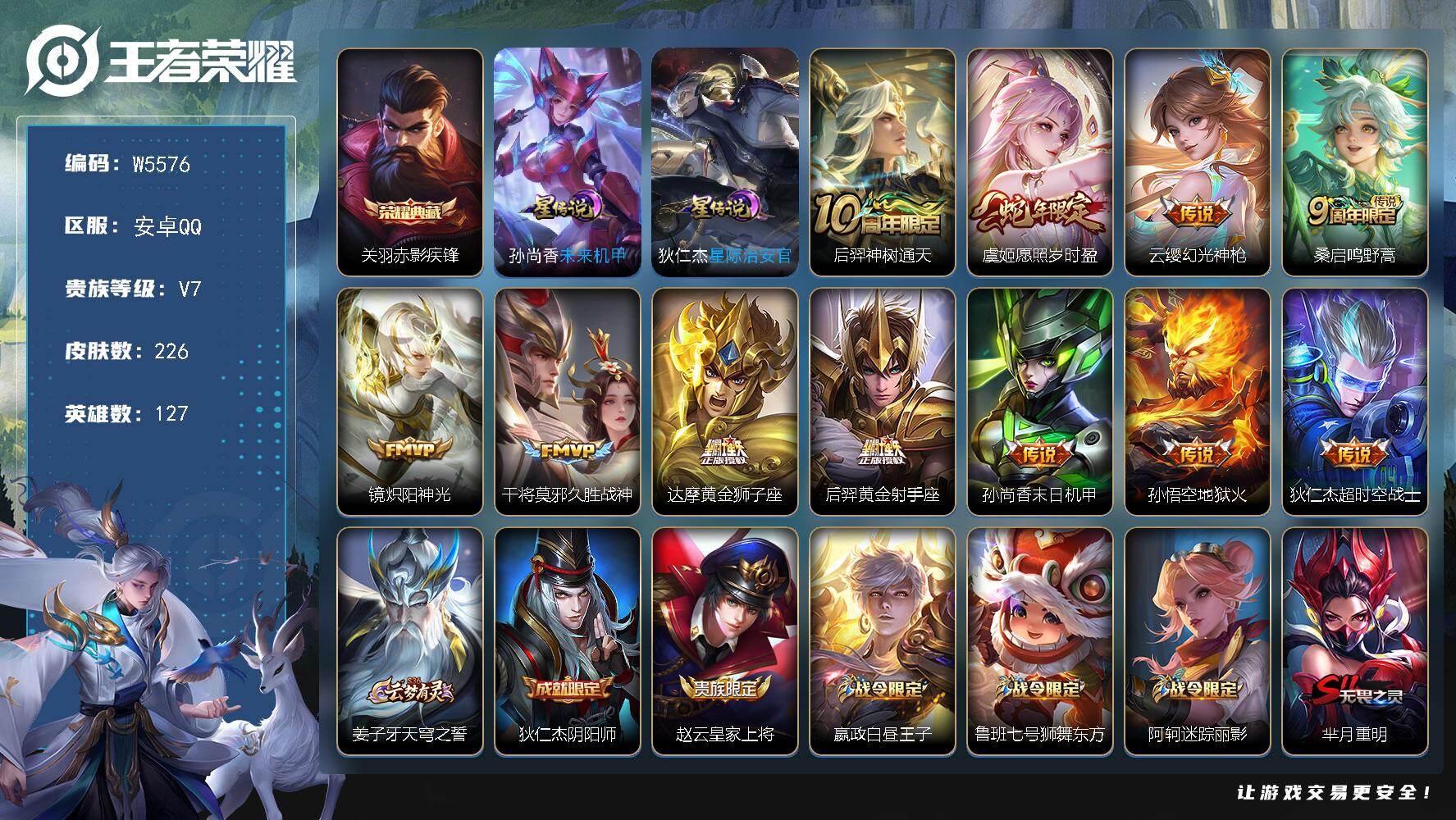 不可二次-贵7-127英雄-224皮肤-1典藏-2星元-6传说-73限定-贵族积分3.6