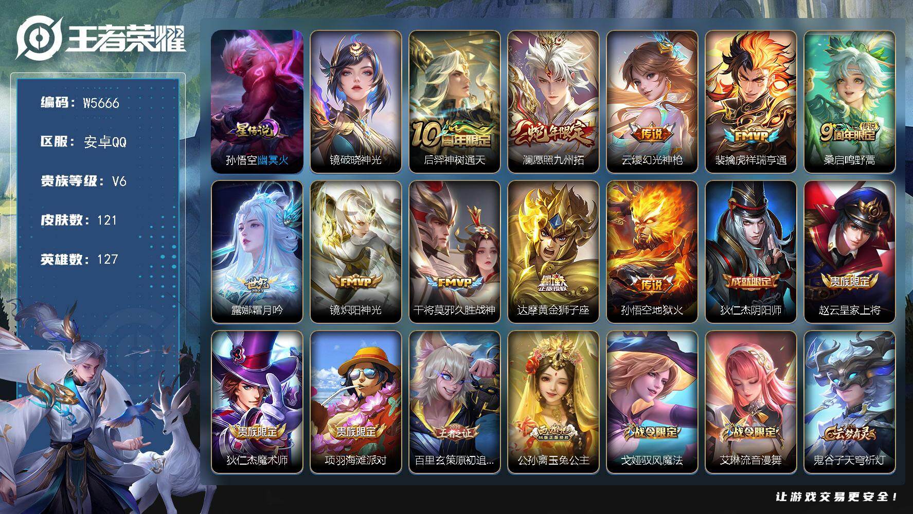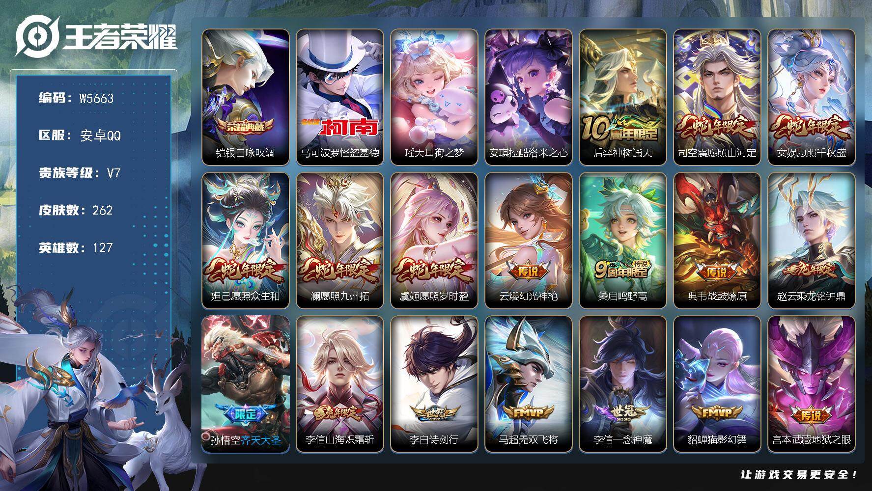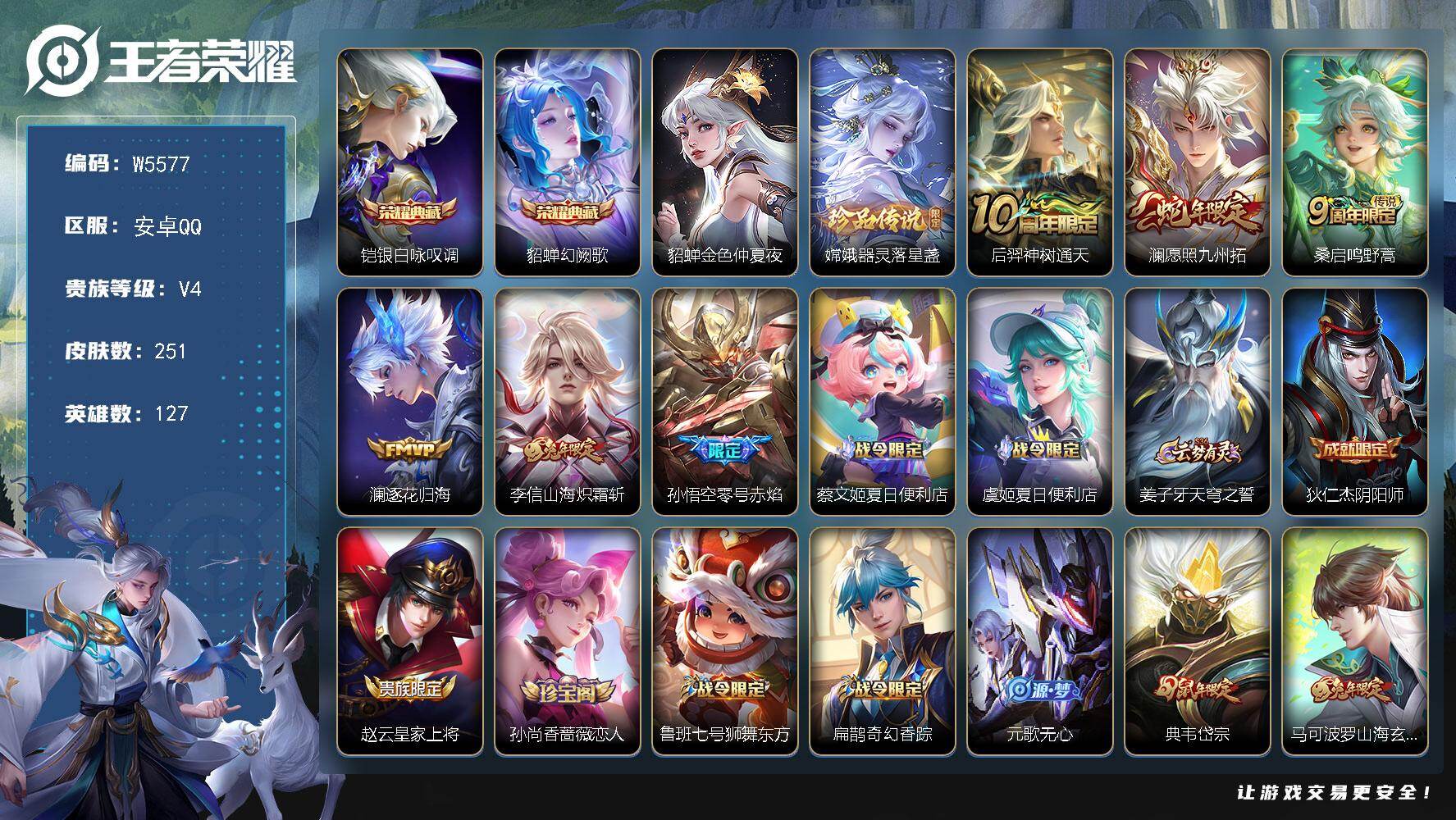 不可二次-贵7-127英雄-262皮肤-1典藏-3珍品传说-17传说-81限定-1天幕.贵族积分4.3万