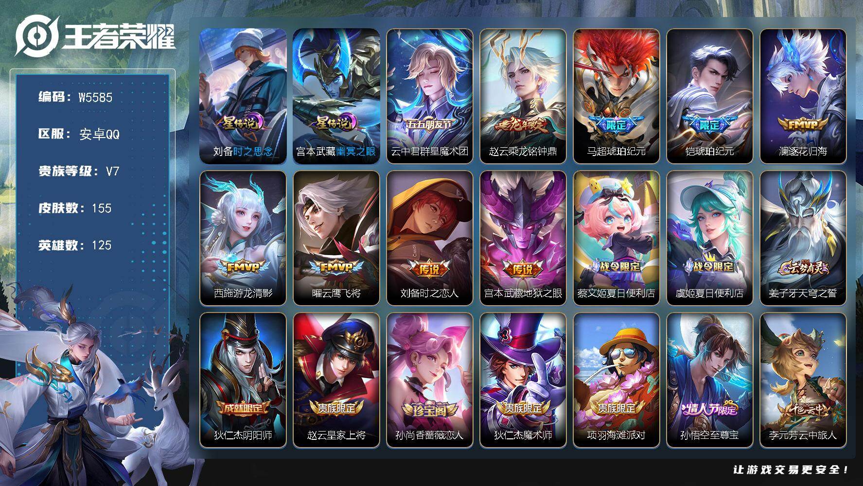 无二次-贵7-125英雄-155皮肤-9传说-2星元-47限定-5按键-灵宝-5印记-2万贵族积分
