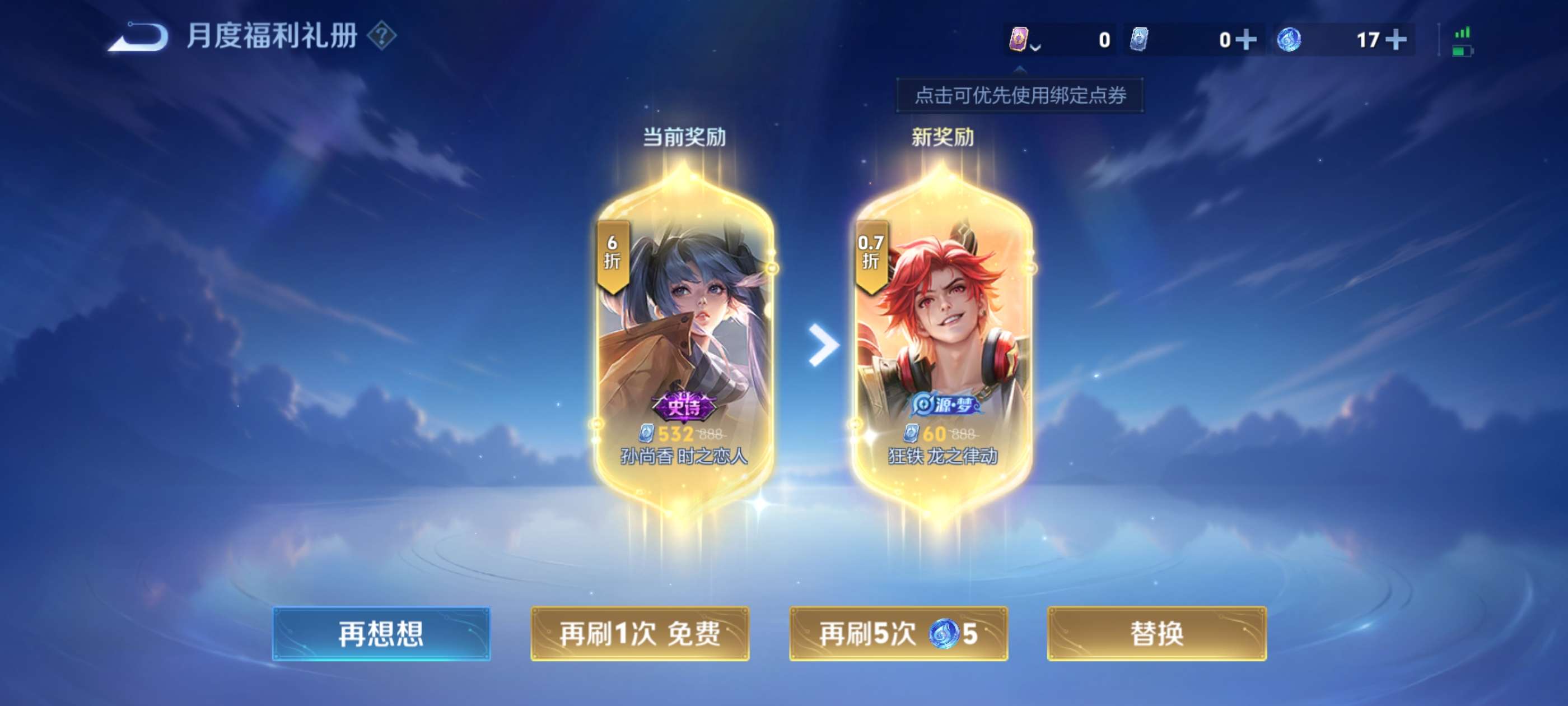 有二次123英雄142皮肤有一个荣耀水晶随便换