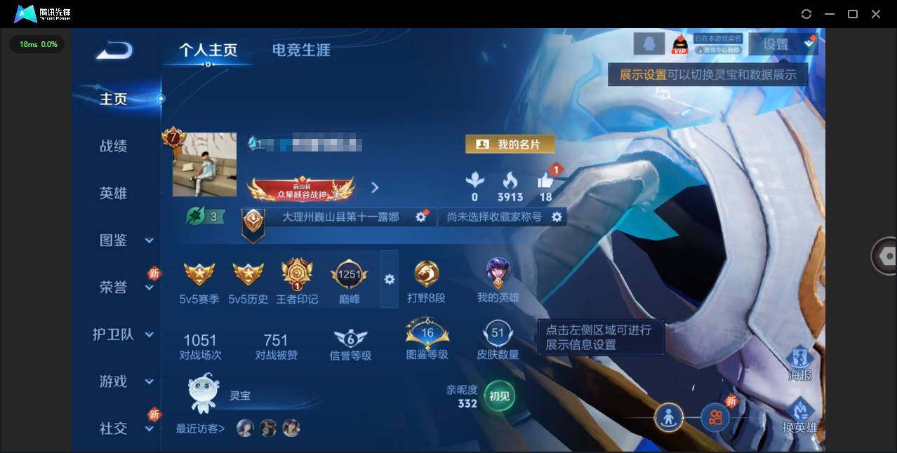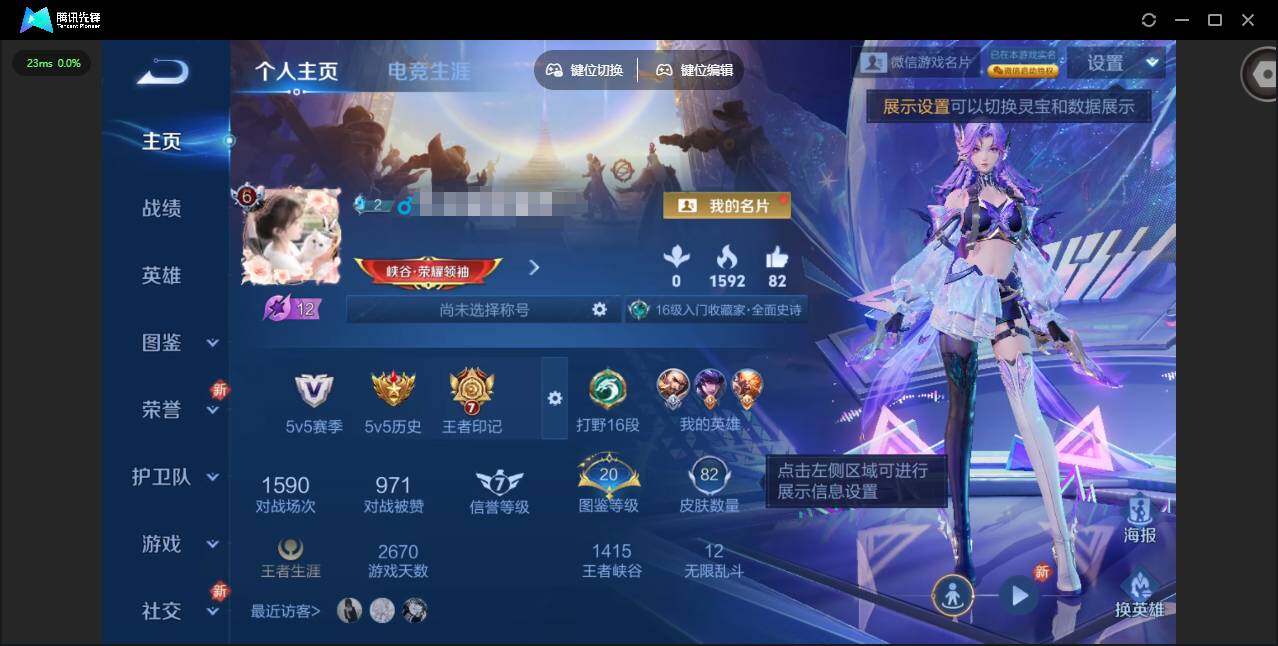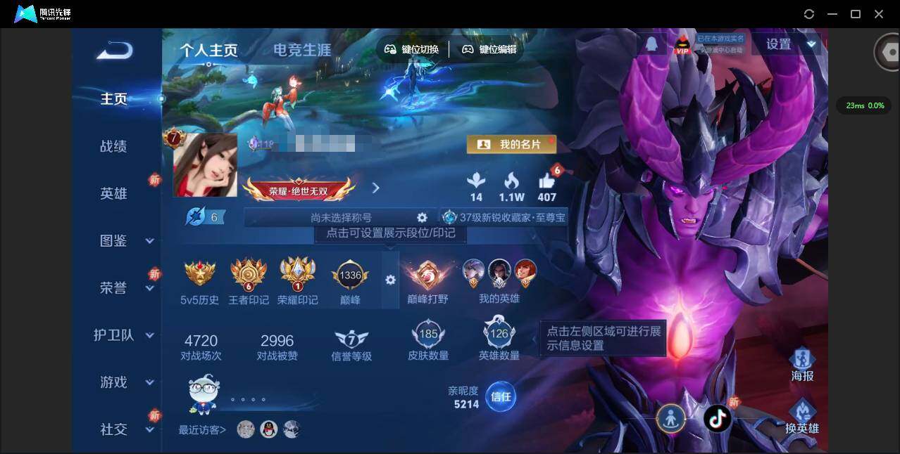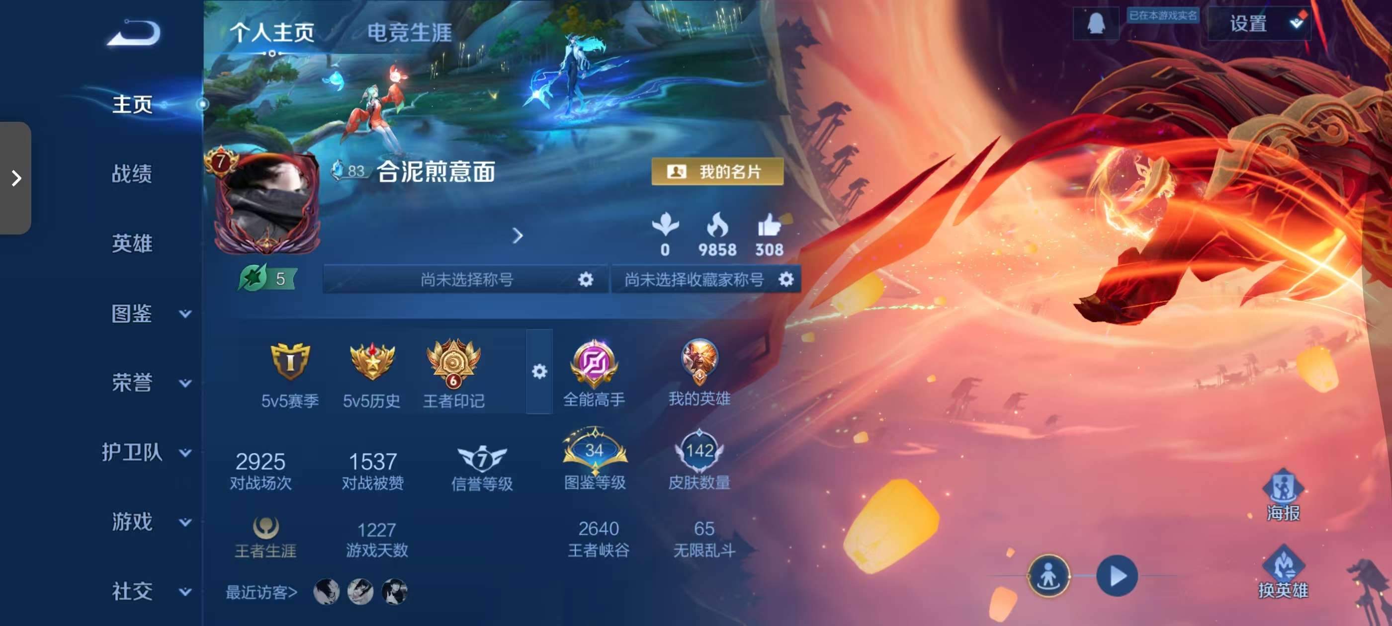 实名: 可修改 贵族等级: V7 英雄数: 123 皮肤数: 115 传说皮: