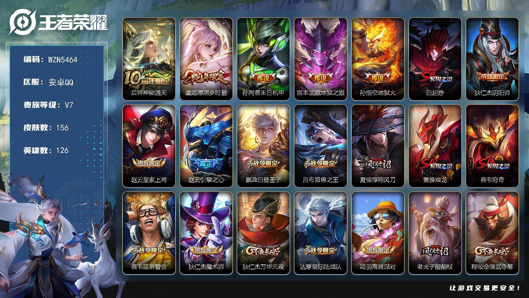 贵族7/皮肤156/传说5/史诗41/英雄126
