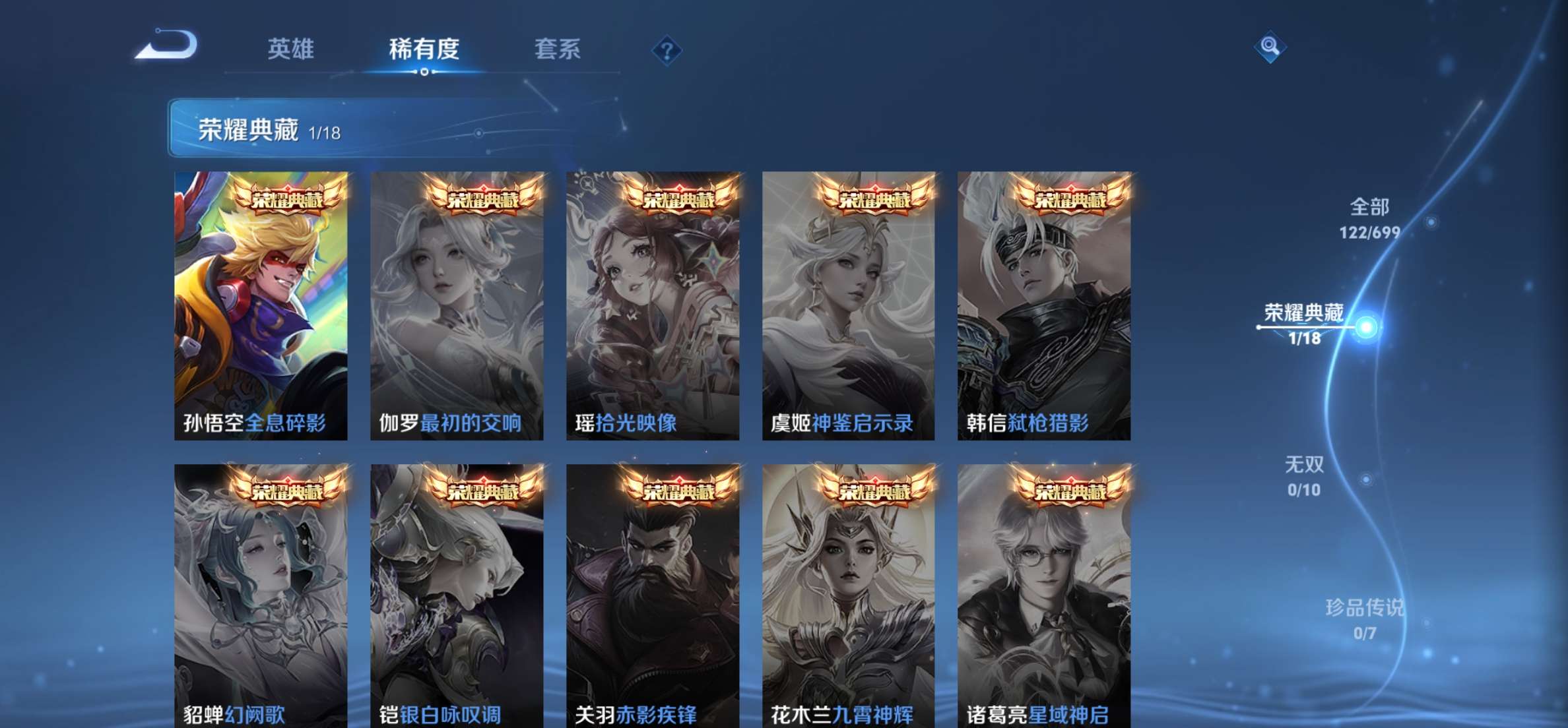 安卓QQ-1典藏-10传说-209皮肤-125英雄-荣耀王者