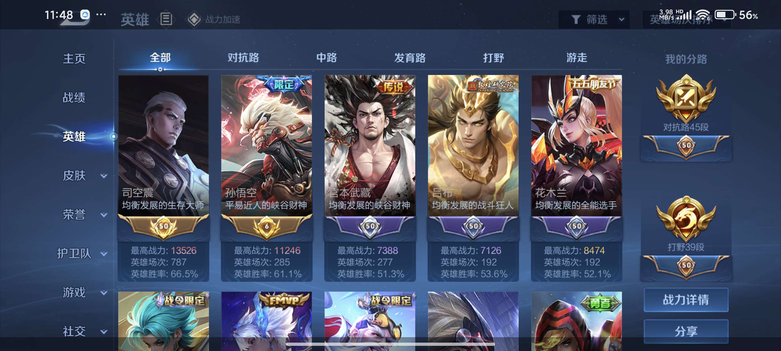 贵族5/皮肤263/典藏1/传说5/史诗67/英雄127/
