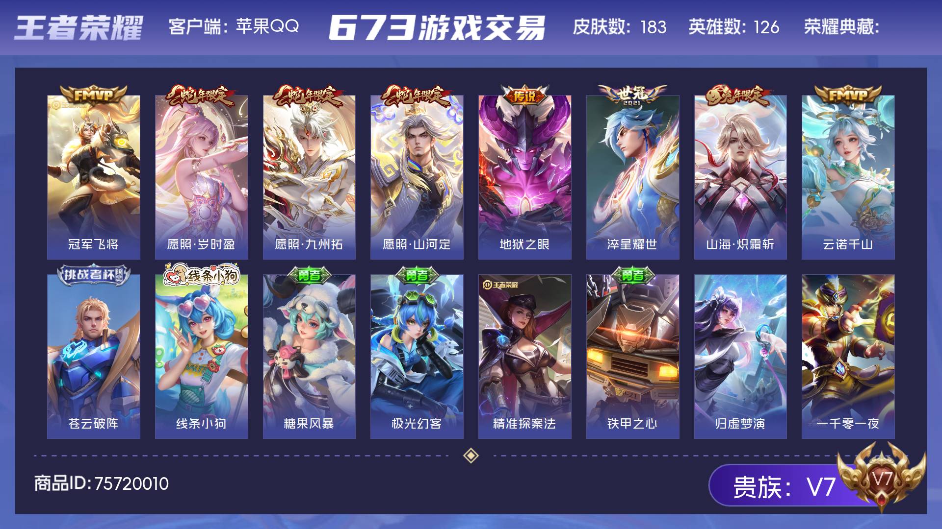 V7 皮肤149 英雄127 至尊星耀 传说7 其他皮肤147
