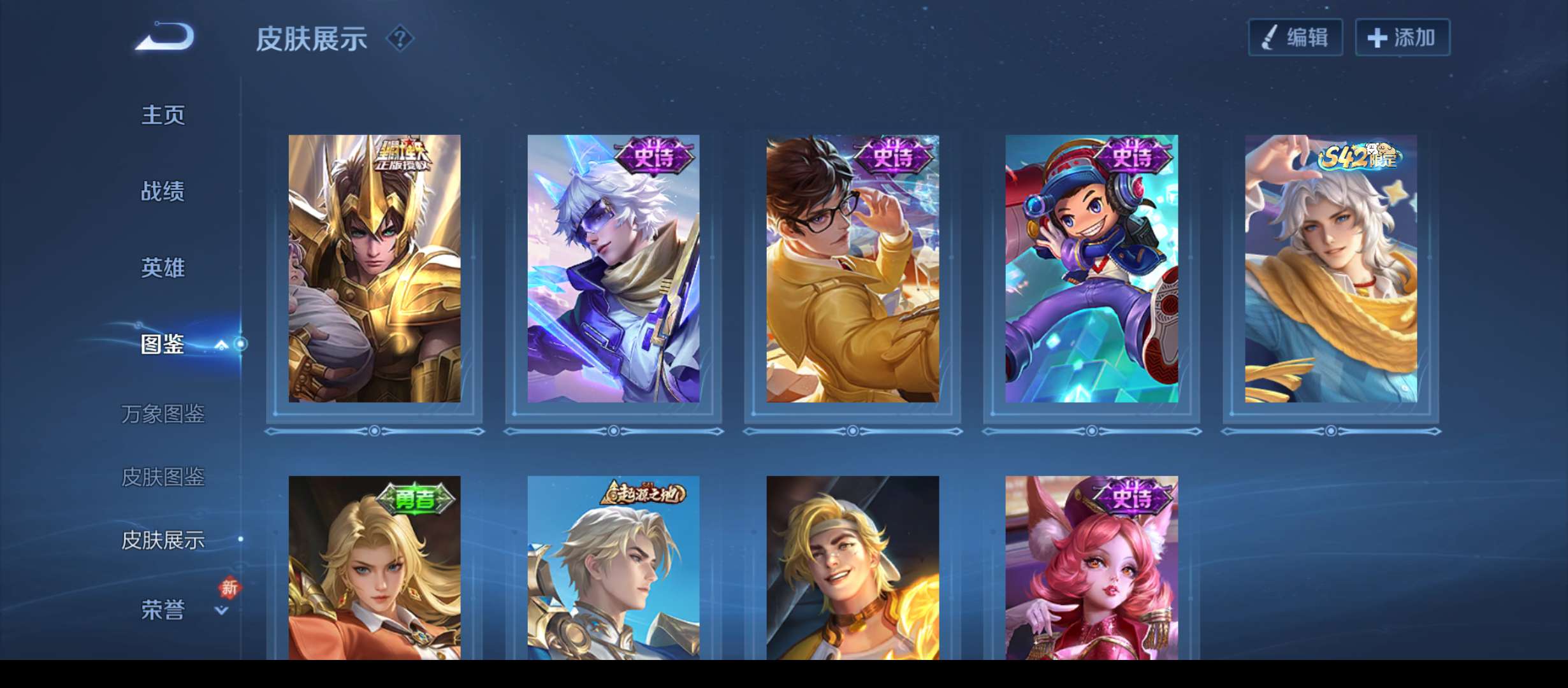 V10 皮肤431 英雄129 至尊星耀 荣耀典藏4 无双皮肤2 珍品传说1 传说45 其他皮肤386