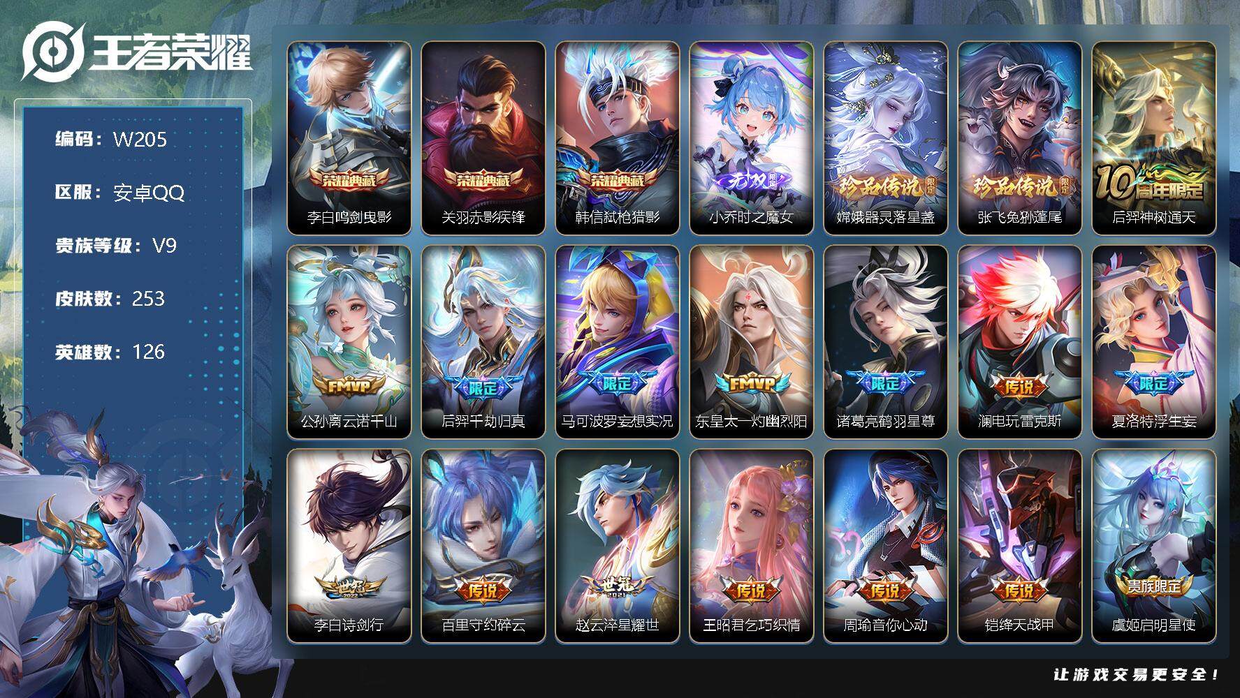 【W205】安卓q-有二次-贵8-123英雄-234皮肤-3典藏-1无双-2珍
