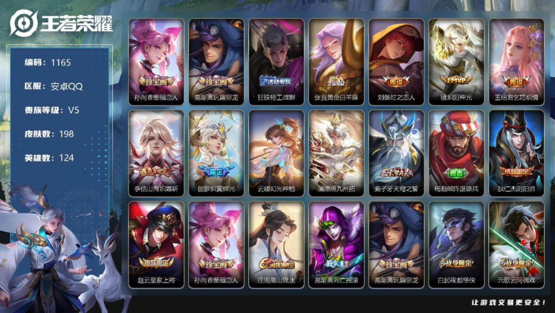 【商品标题】:安卓Q-V5-至尊星耀V段位-124英雄-1
