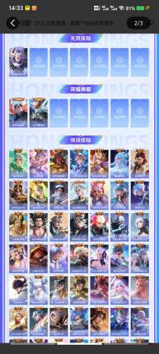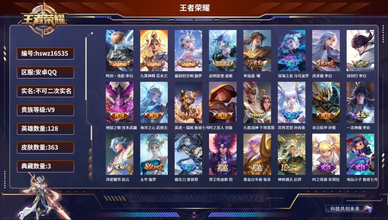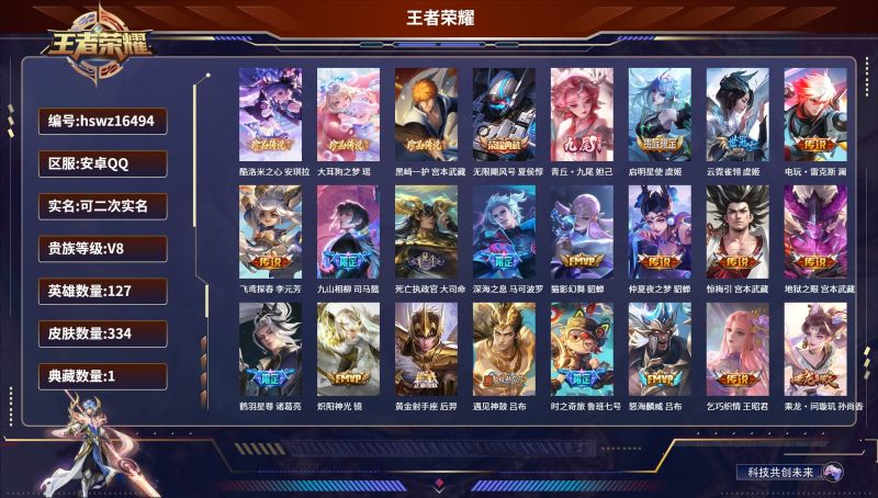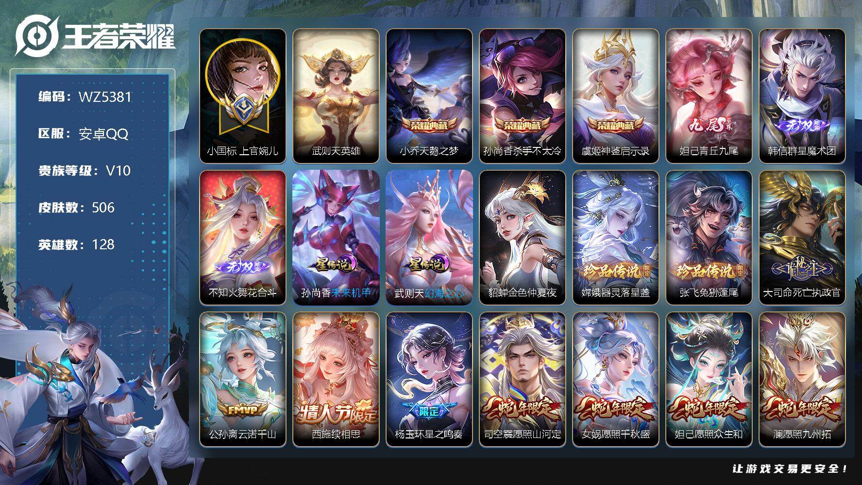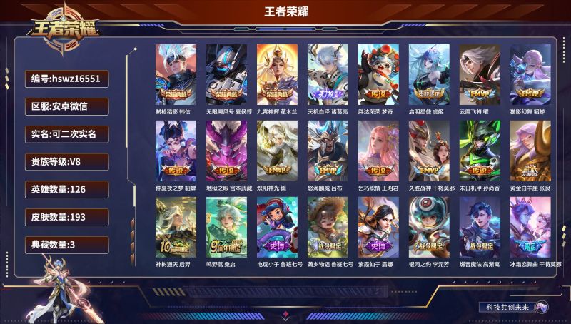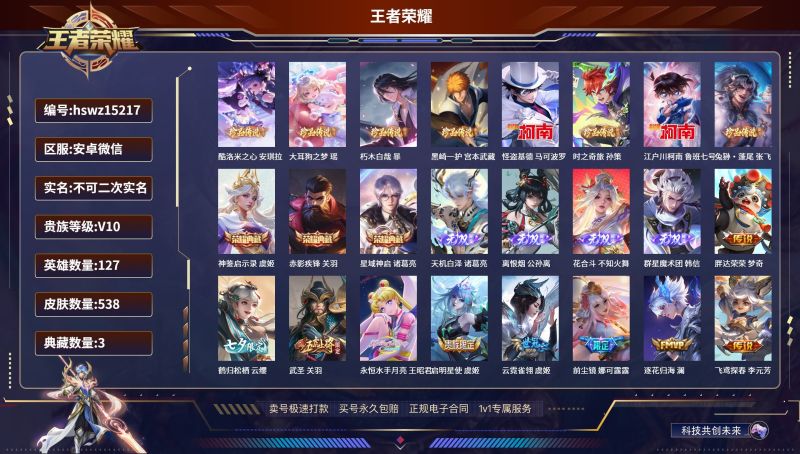 安卓微/永恒钻石/538皮肤/127英雄/3典藏/0珍品无双/4无双/8珍品传说/72传说/173